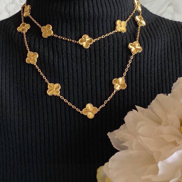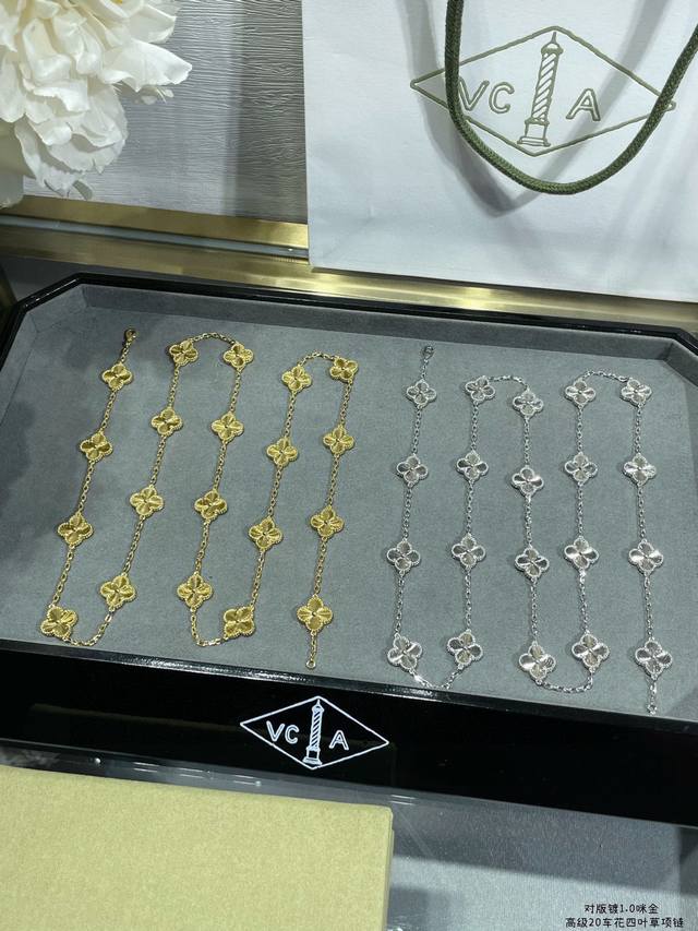 Vca Twenty-Flower Laser Necklace Zp 000+, meticulously crafted sterling silver with thick gold plating, Zp genuine rhomboid lobster clasp