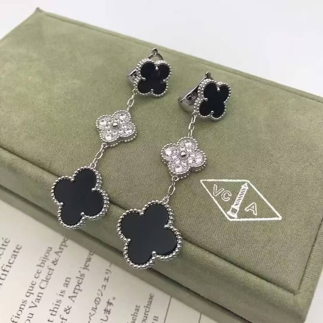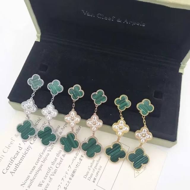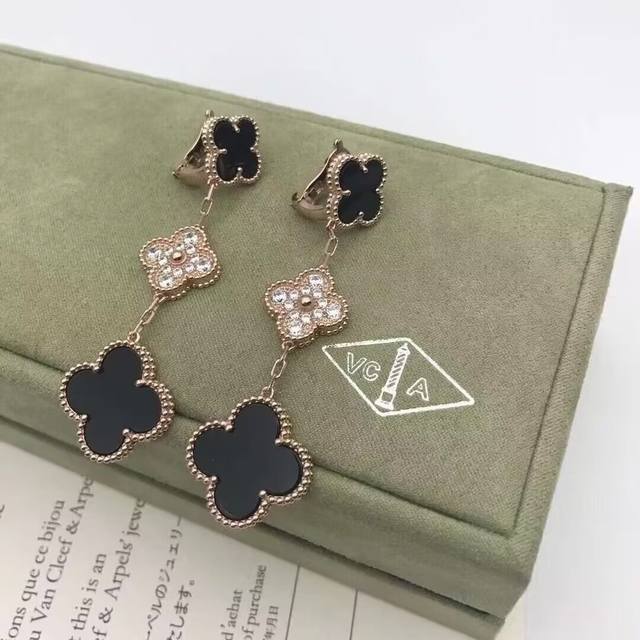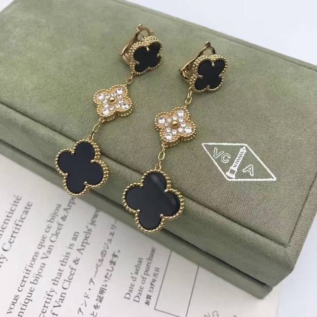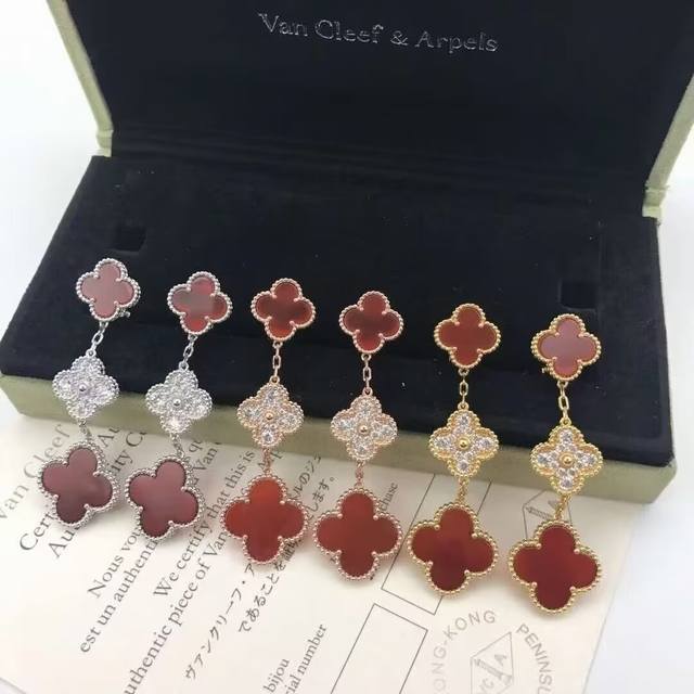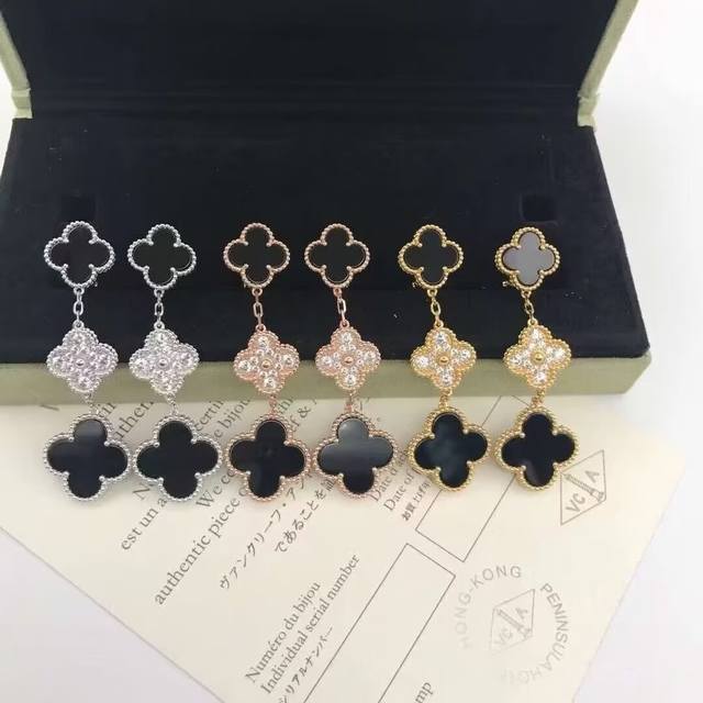 / Vca Van Cleef & Arpels Clover Tricolor Mother-of-Pearl Interlocking Diamond Earr