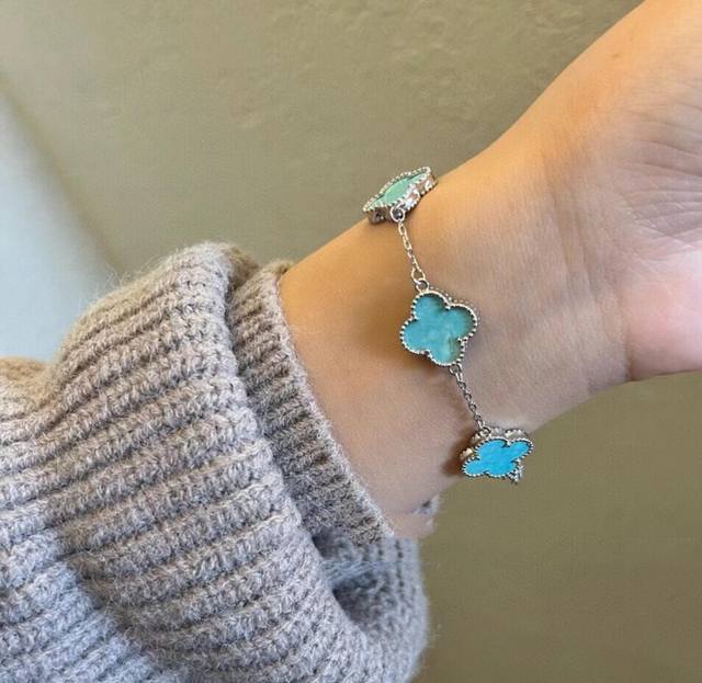 Vca Van Cleef & Arpels four-leaf clover bracelet Amazonite four-leaf clover five-flower bracelet