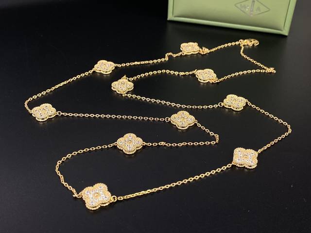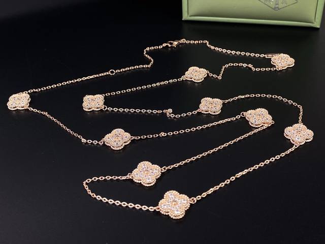 / Vca Van Cleef & Arpels full-diamond four-leaf clover ten-flower sweater chain, s