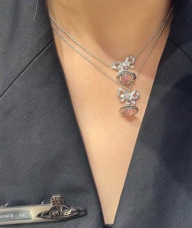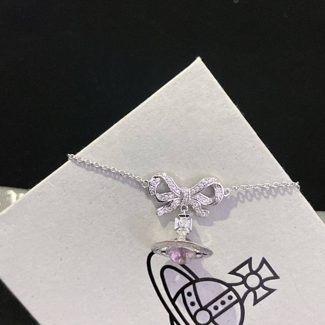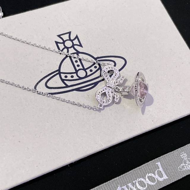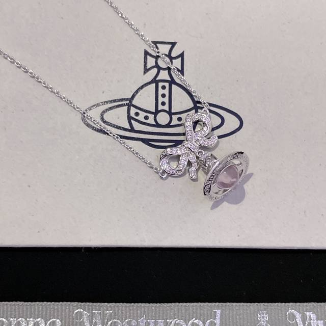 Vivi Bow 3D Saturn Necklace, Empress Dowager Necklace Z 1960, absolutely gorgeous and dreamy! New transparent pink beads added! A must-have for anyone with a girlish heart! Baby, what is Happy Planet? Come on, this is Happy Planet! Exquisite bow 3D Saturn necklace! So dreamy! Soft transparent pink beads! So beautiful! Highly recommended! The diamond in the center of the planet sparkles with light, hitting your heart. I love it! Simple yet sophisticated, you can't go wrong with this! The pure crown sphere is a classic symbol, the sparkling Saturn rings outline the future, opening a new encounter with the future! Holding it in your hand, you can completely feel its texture, feel, and luster