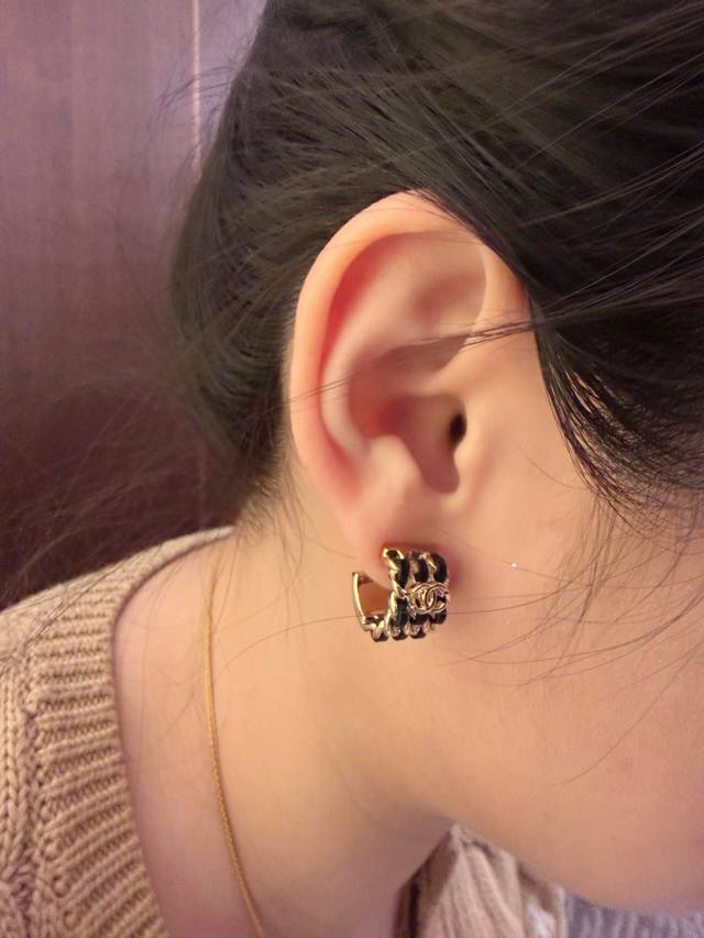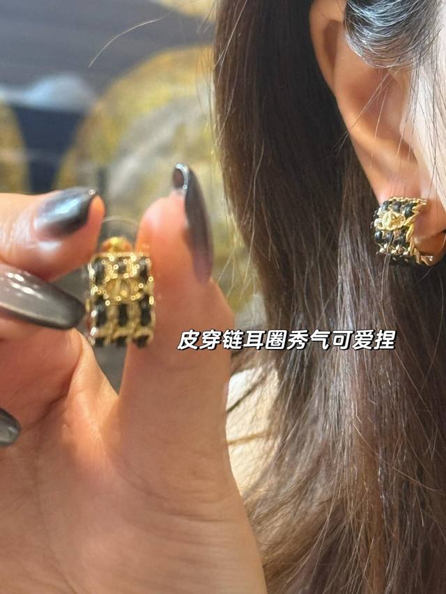 Black half-circle leather stud earrings, batch 26 latest style, first release online! Purely handmade leather with full diamond double C embellishments, the metal chain is hand-polished, incredibly smooth and delicate! The details showcase the perfect overall style! You won't want to take them off once you put them on! Cool and sweet yet fashionable! Classic elements never go out of style, a must-have for all seasons.