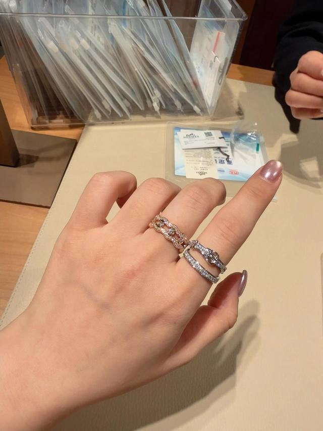 We produce the Etriviere double-band ring, available for custom order in 18K genuine gold and diamond. We only make genuine gold versions that match the original design. For pricing, please inquire.