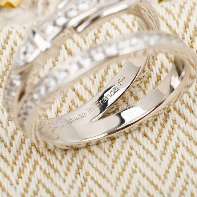 We produce the Etriviere double-band ring, available for custom order in 18K genuine gold and diamond. We only make genuine gold versions that match the original design. For pricing, please inquire.