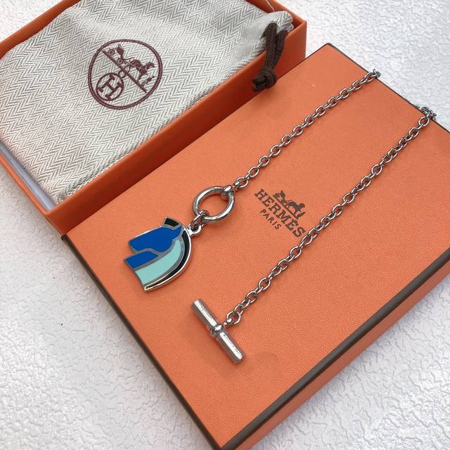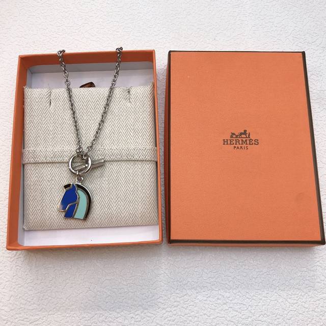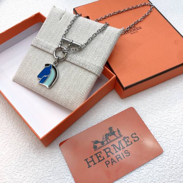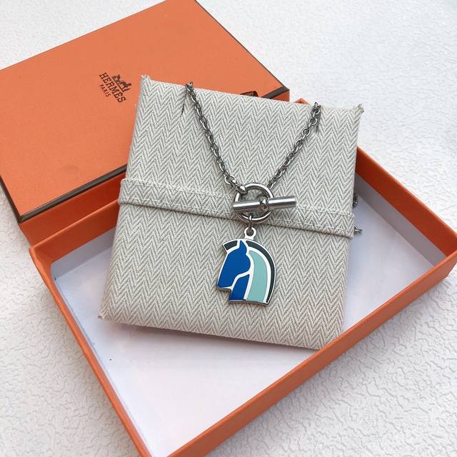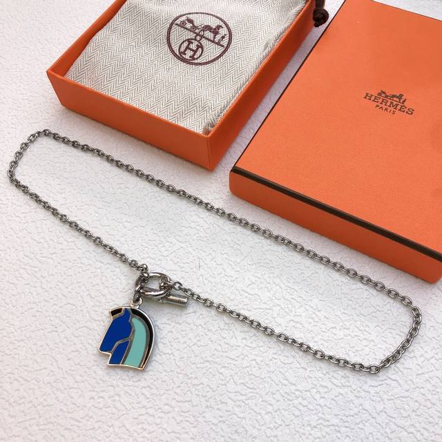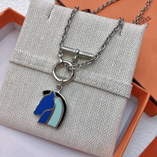 . Herm S's 2017 Lunar New Year runway necklace, Helios Foracheval, features a horse head design with blue-toned enamel accents