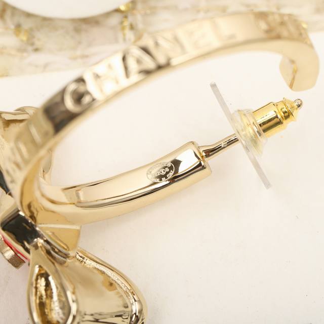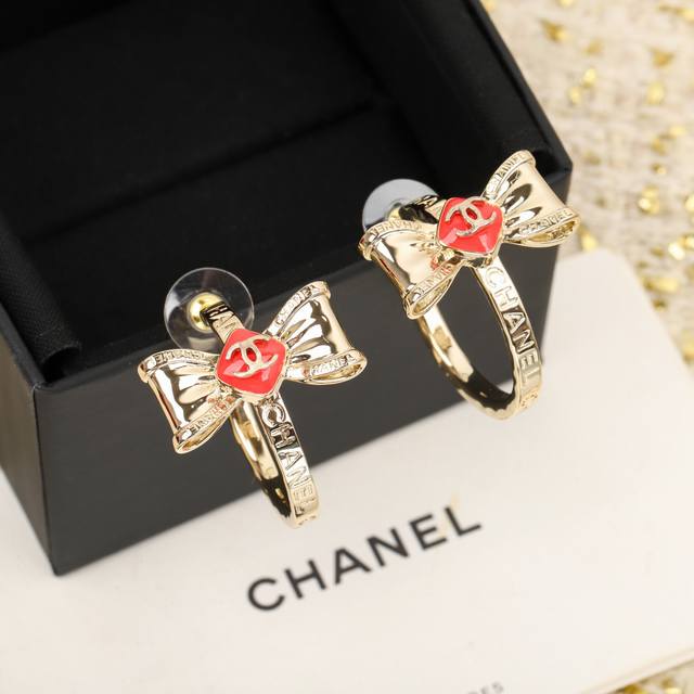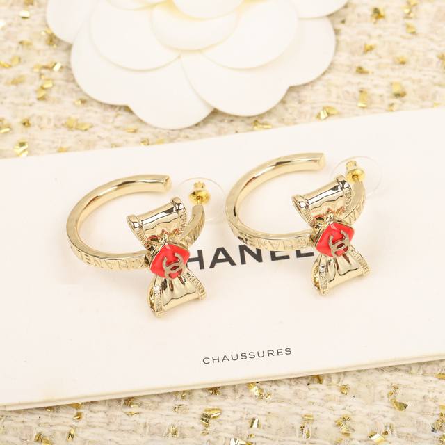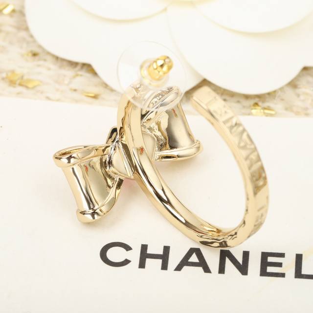 Ch Nel Bow Double C Stud Earrings. A must-have classic double C stud earring every season, made of the same Z batch brass material with drip oil process, simple and elegant on the ear, super versatile, a classic that will never go out of style, a must-have for fragrance lovers [witty]