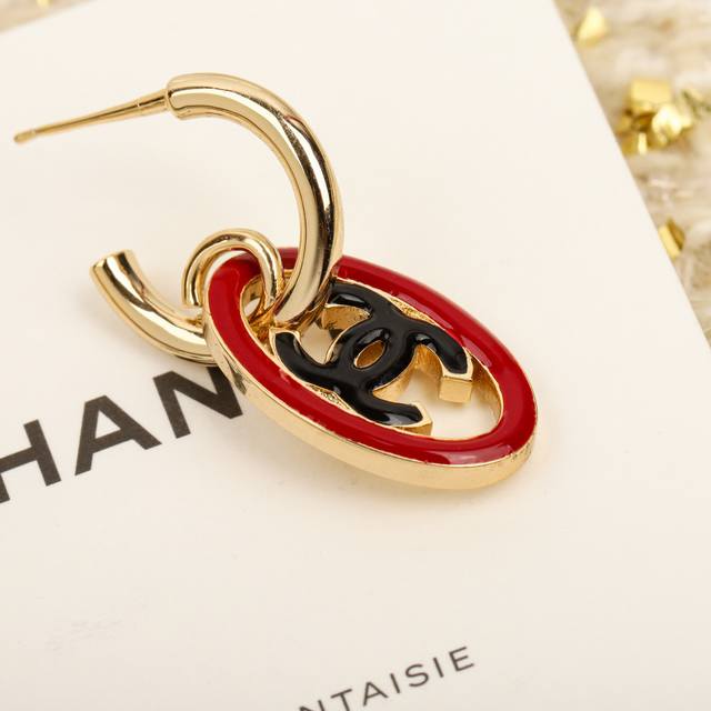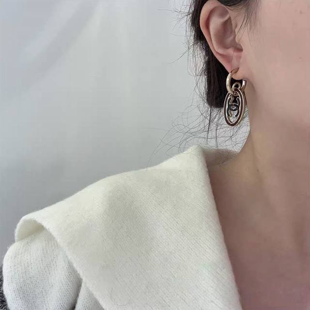 Ch Nel24S oval double C earrings are classic double C earrings that must be included in every issue, consistent with the first batch of Z brass material oil dripping process, simple and elegant on the ear, super versatile, classic and timeless fragrance powder must be included witty]