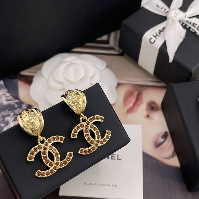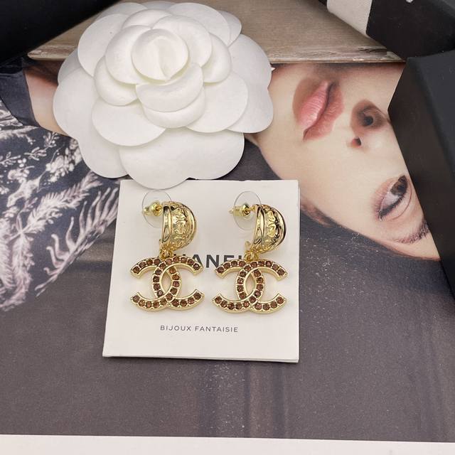 We're selling the same gold curved leaf and brown diamond C earrings worn by Zhang Junning, Z 5900. For larger quantities, please consult our customer service! The 25th Autumn/Winter Haute Couture collection is incredibly detailed, and the latest styles are available online for the first time! First come, first served! Wow, so beautiful! A must-have this season! It's got a very vintage feel! So elegant and sophisticated! The classic double C logo paired with amber Swarovski rhinestones is truly unique and creative, creating a truly ethereal, feminine, and elegant look! It has a retro Hong Kong feel, a vintage vibe, and a unique, stylish, and stylish look, perfect for everyday wear! Absolutely stunning and versatile, the blingbling is incredibly detailed, and the sparkle is exquisite. I love it!