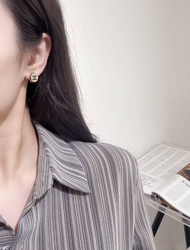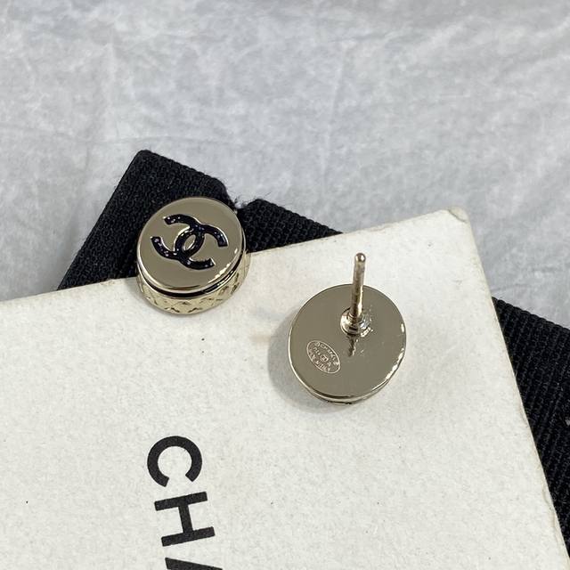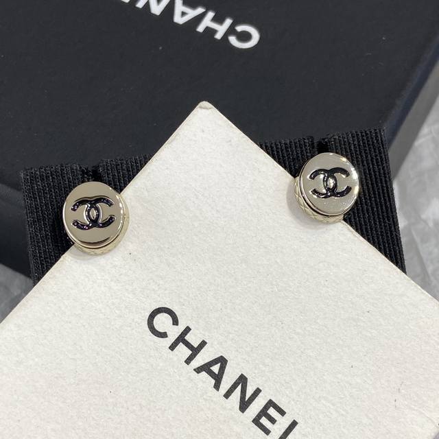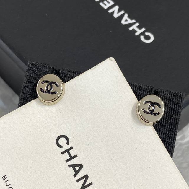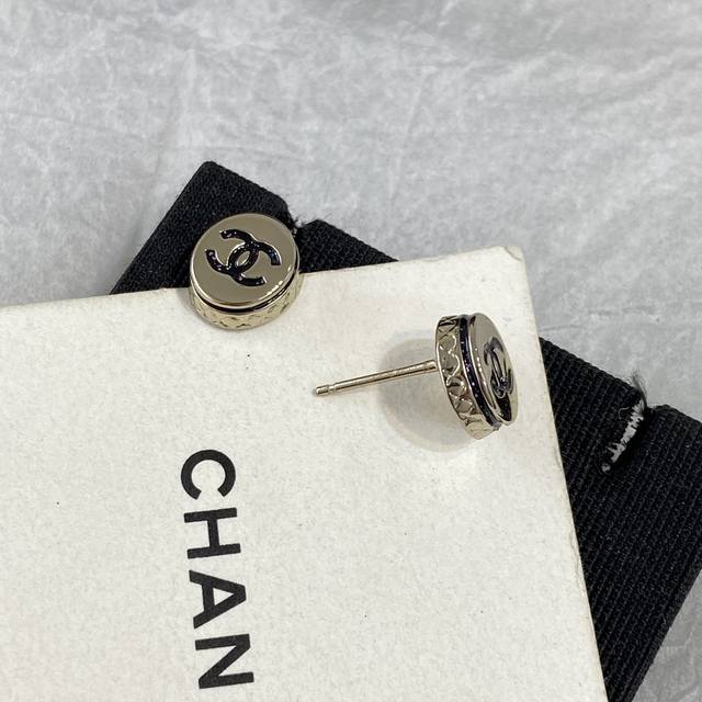 Ch Nel Diamond Round Enamel Double C Earrings