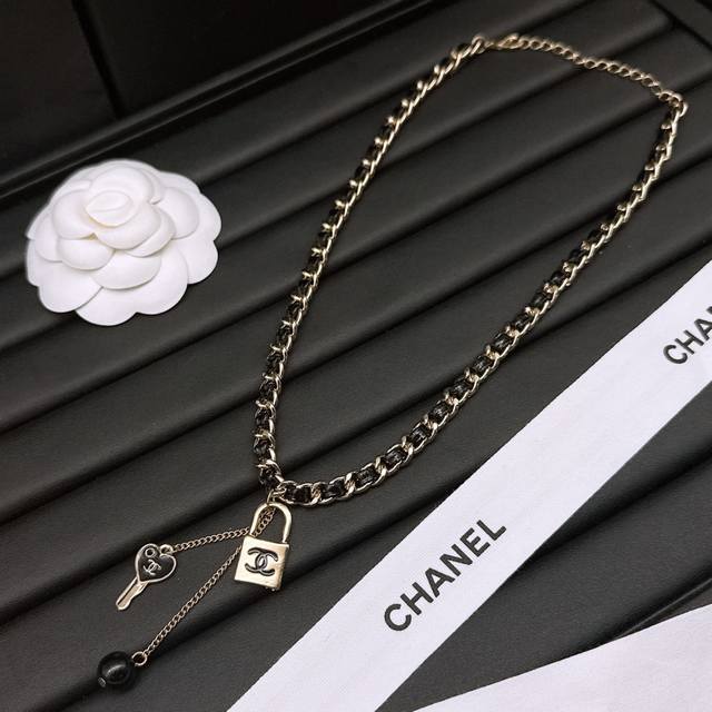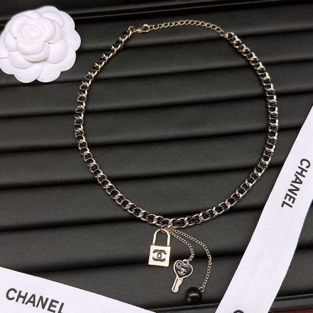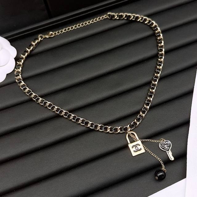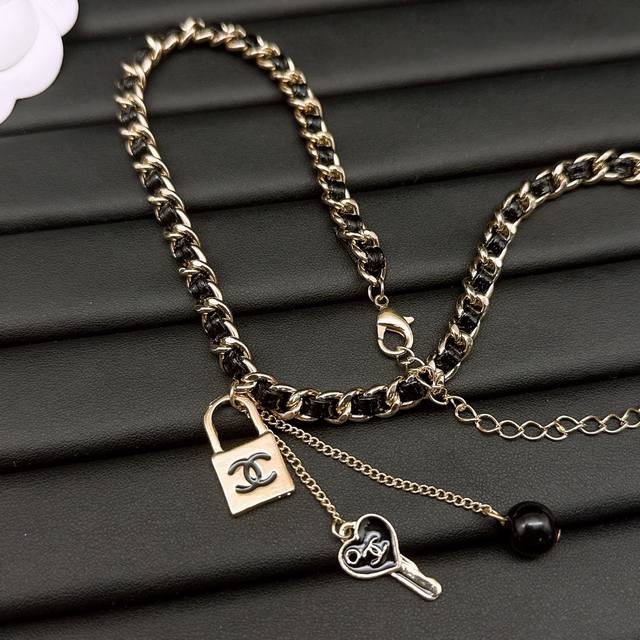 / Xiaoxiang lock key black bead pendant braided chain necklace