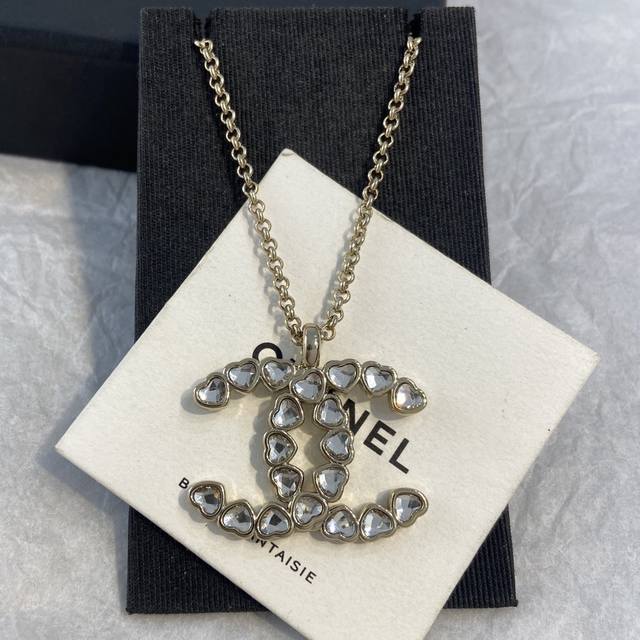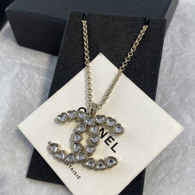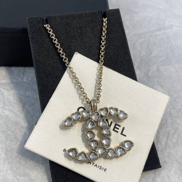 / Xx0293 Ch Nel Full Diamond Heart Double C Necklace Ddd