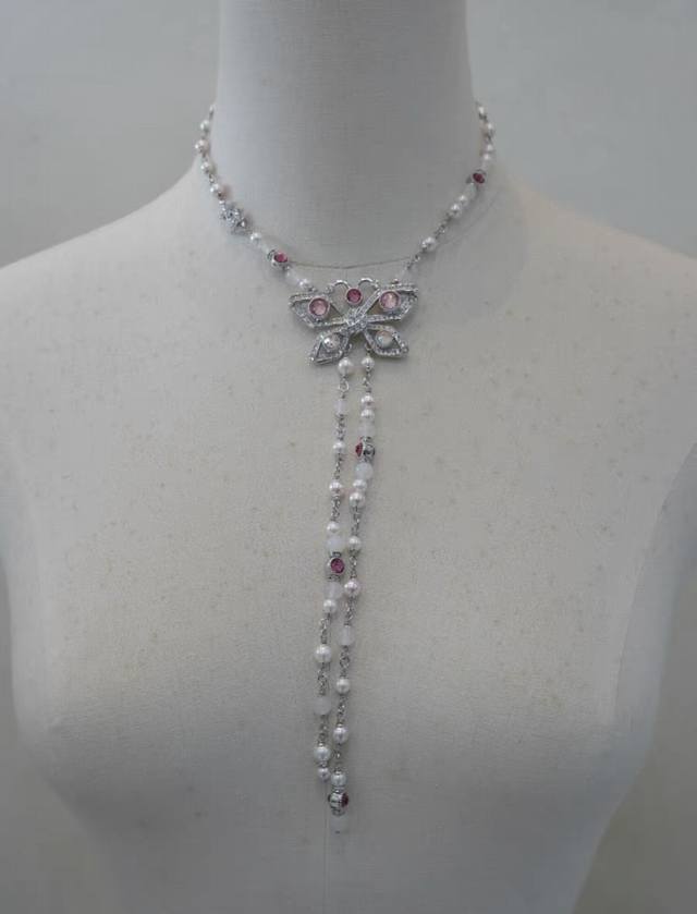 Ch Nel Butterfly Full Diamond Pearl Drop Necklace