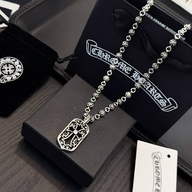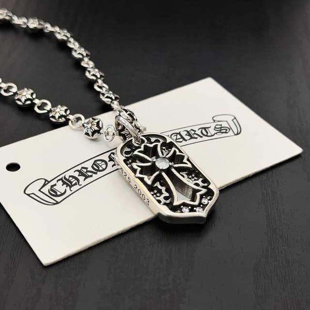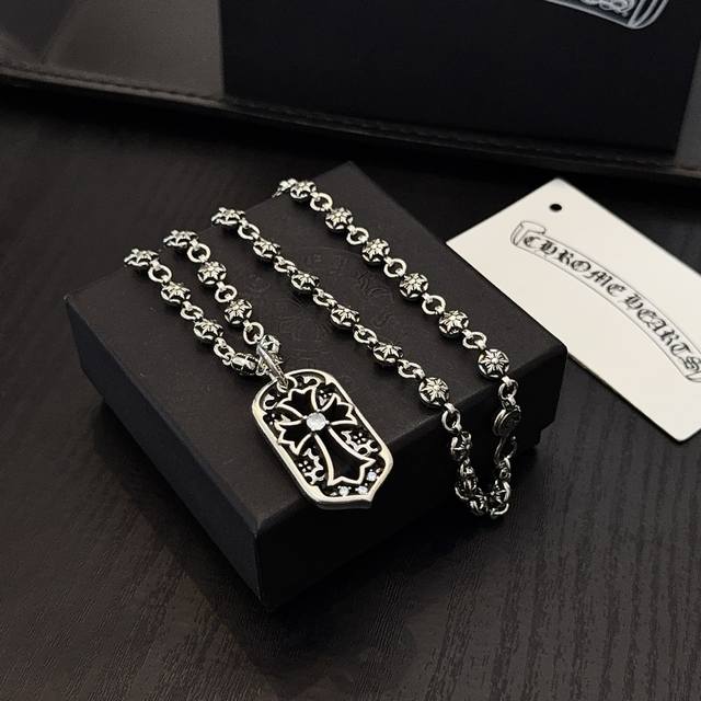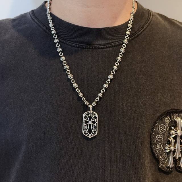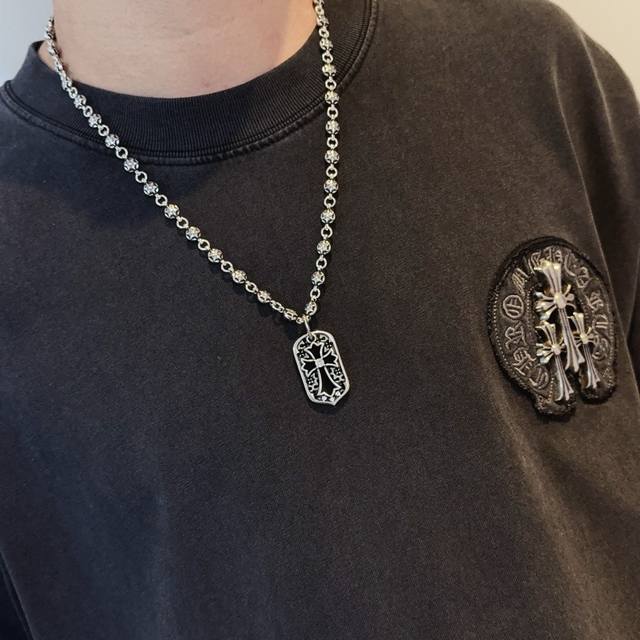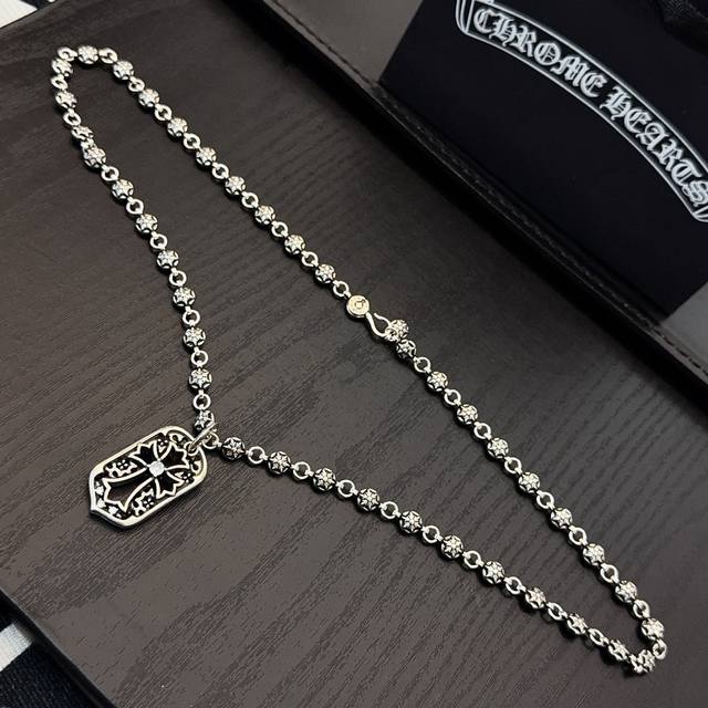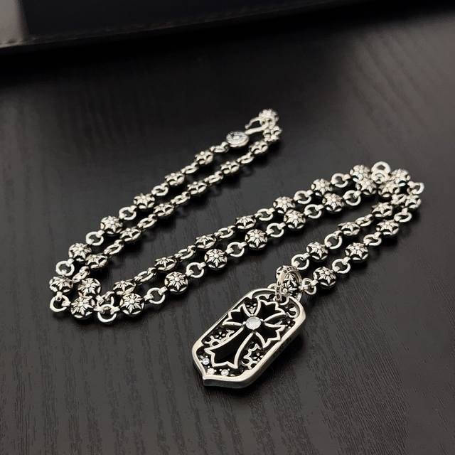 New boutique quality Chrome Hearts classic retro floral ball necklace with square pendant. The embossed design and different patterns create a unique look. The cross and scout flower are Chrome Hearts' signature elements, making them timeless. Authentic Chrome Hearts replica, different from ordinary versions on the market. High-quality replica with detailed lettering and vintage distressing. Exquisite craftsmanship! Handmade! Authentic mold, trendy and fashionable, suitable for both men and women, couples. Official website original, rock punk Thai silver style, retro elements, trendy and versatile!