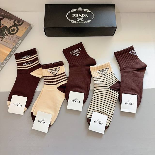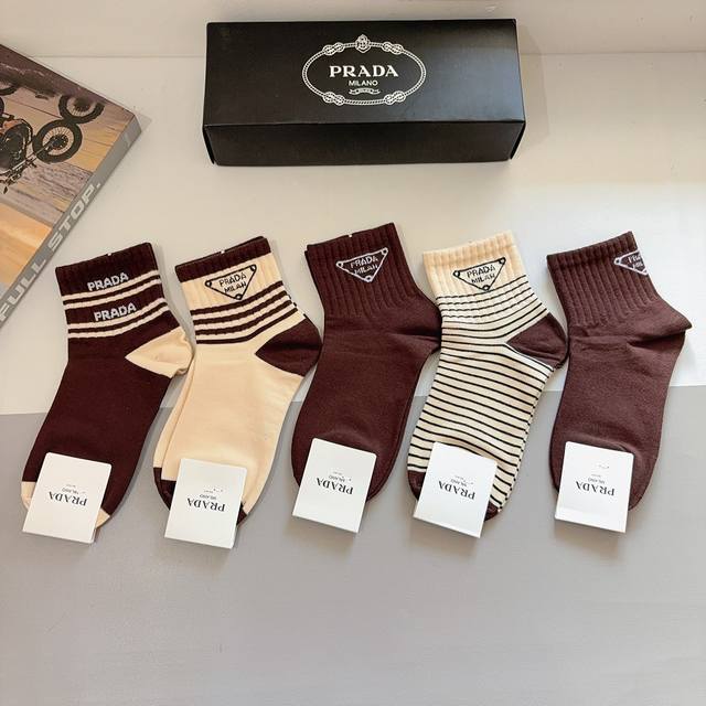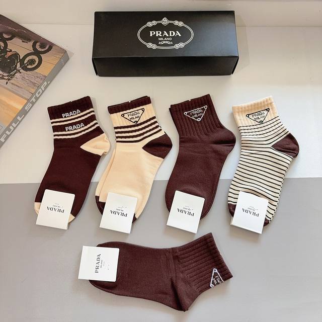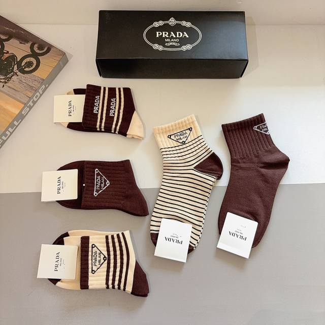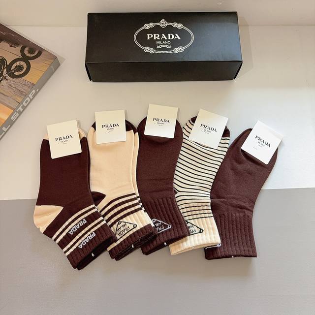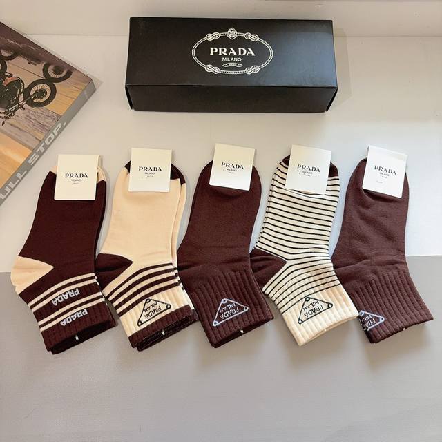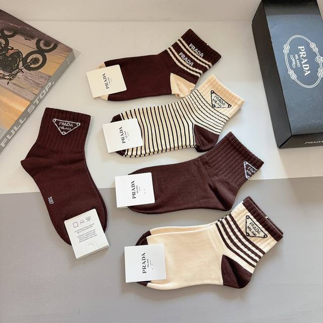 Prada new mid-calf socks, pure cotton fabric, classic triangle logo , personalized fashion and versatile style, you deserve it