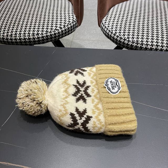 / Prada 2025 new autumn and winter warm retro jacquard wool hat female Fair Isle