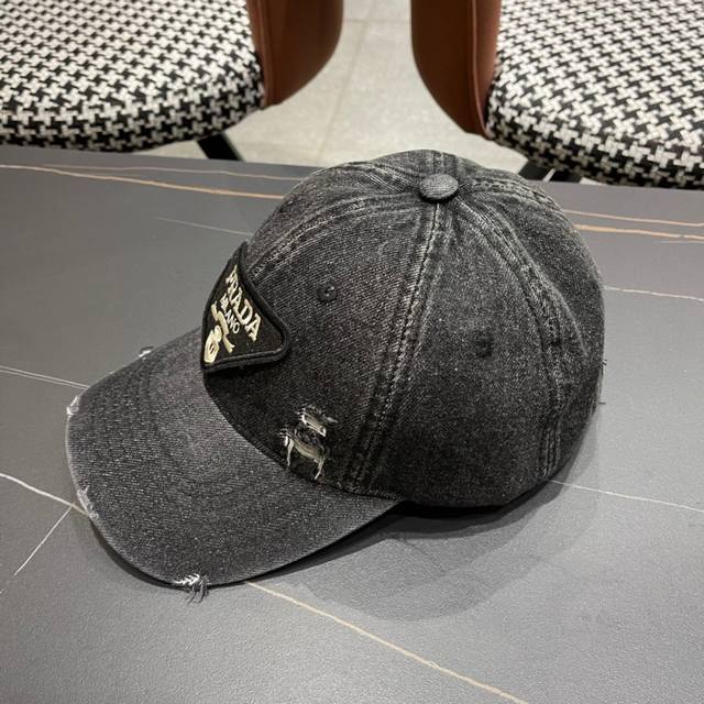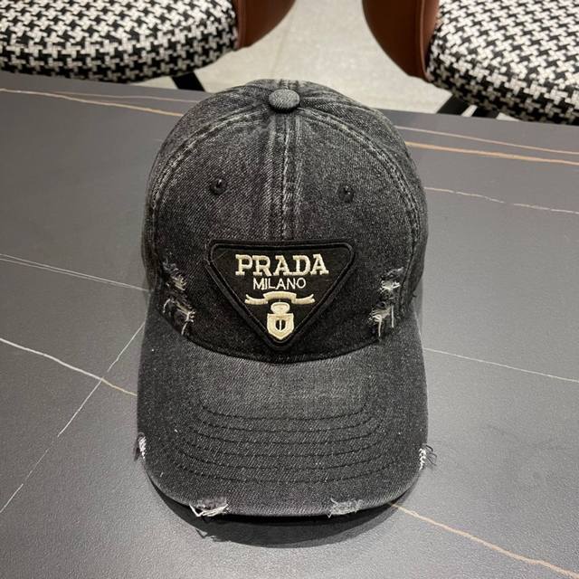 Prada 2025 Spring and Summer new big brand denim baseball cap, new shipment, bi