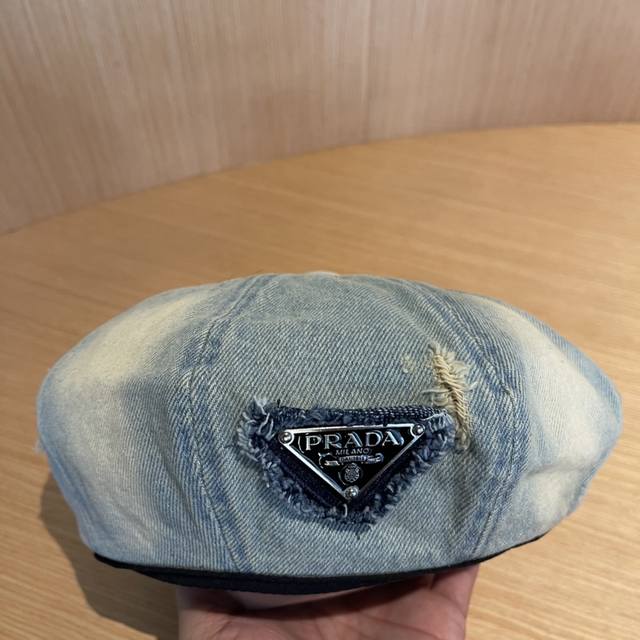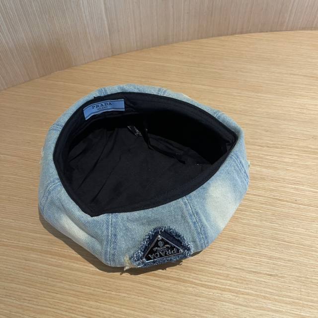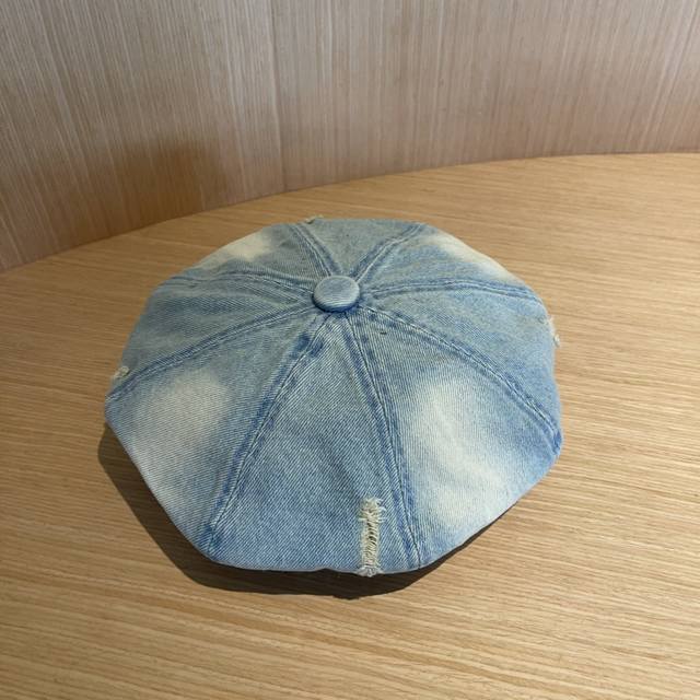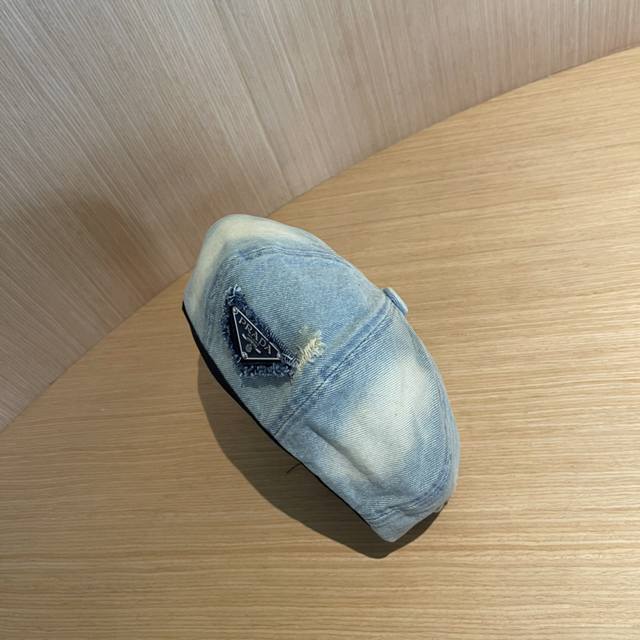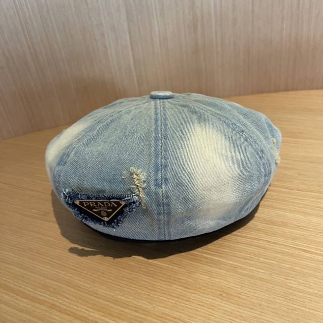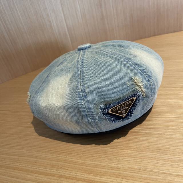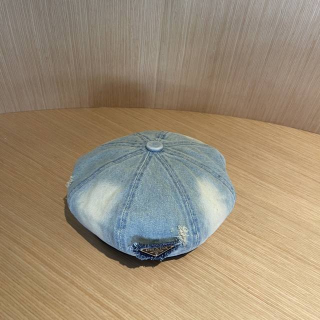 Prada beret, retro denim hat, new women's newsboy cap, makes your face look smaller.