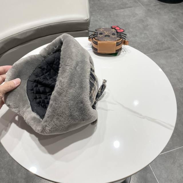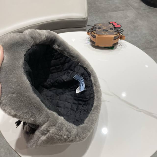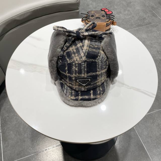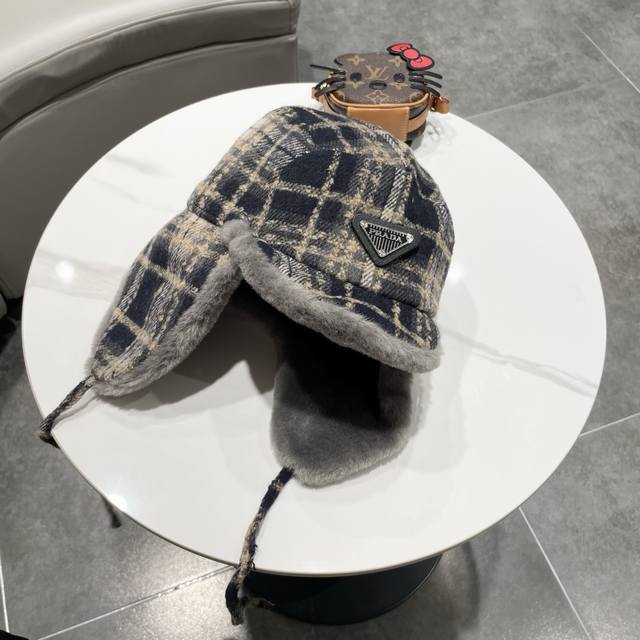 / Prada couple's plaid fleece-lined Lei Feng hat, women's warm ear-protecting wint