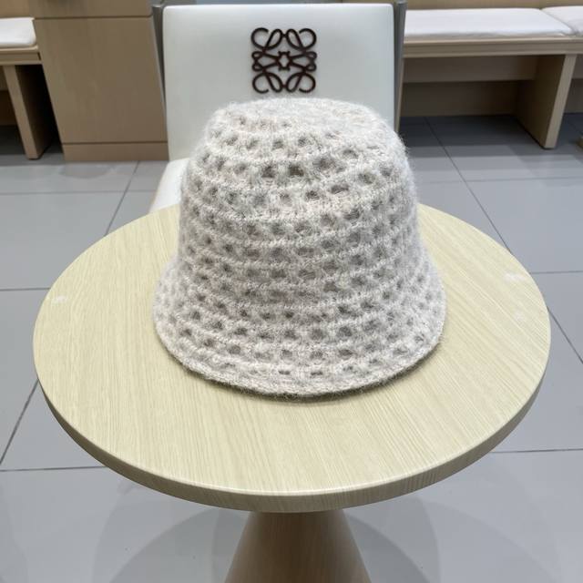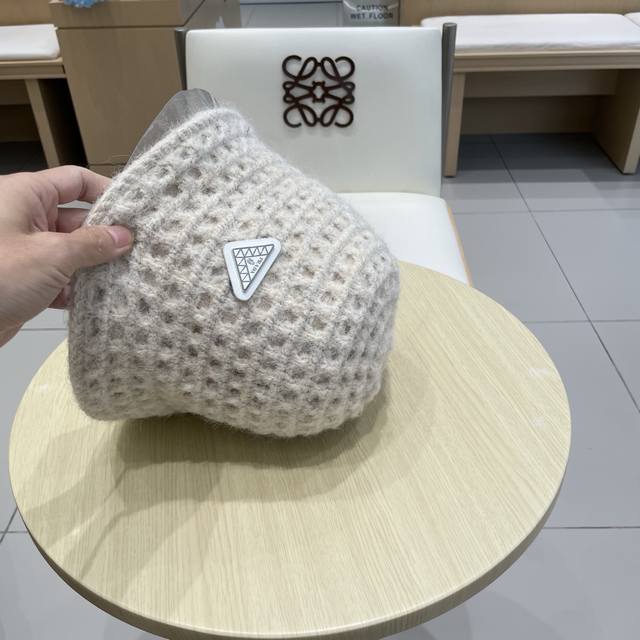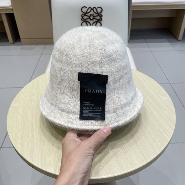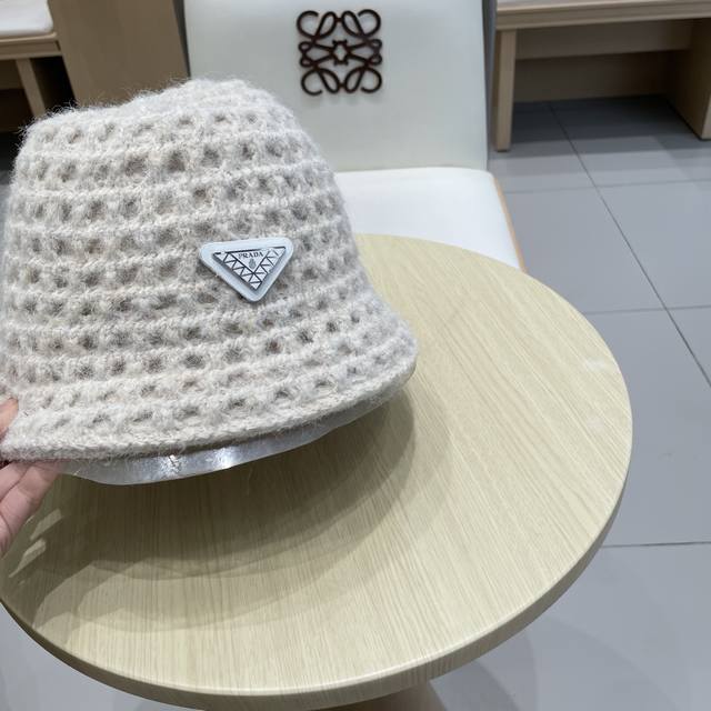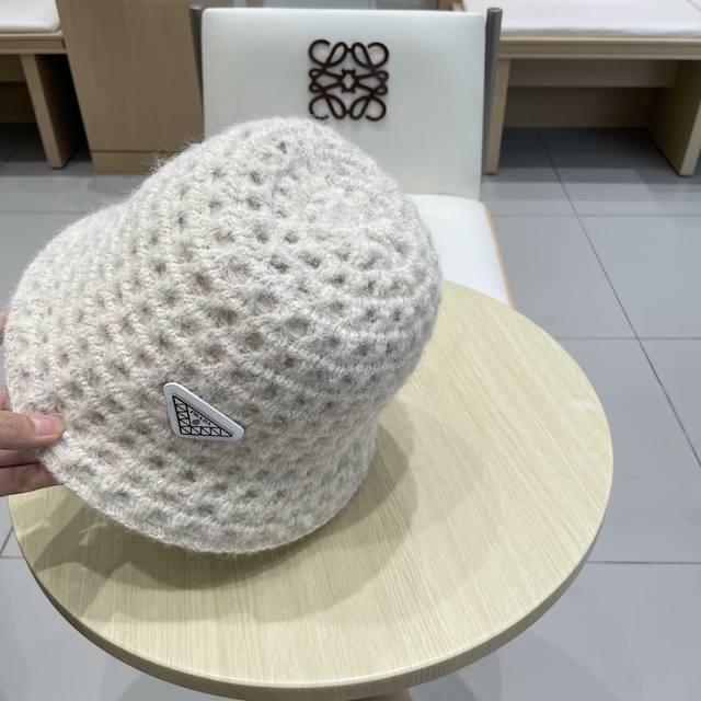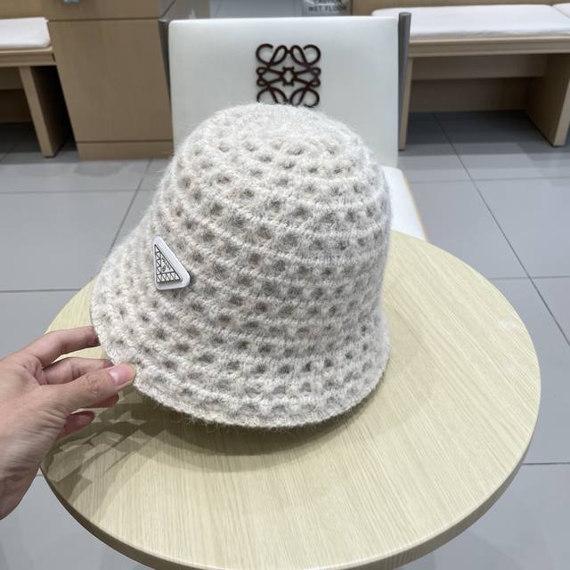 Prada double-sided versatile openwork understated retro warm ear-covering autumn and winter elegant women's knit bucket hat