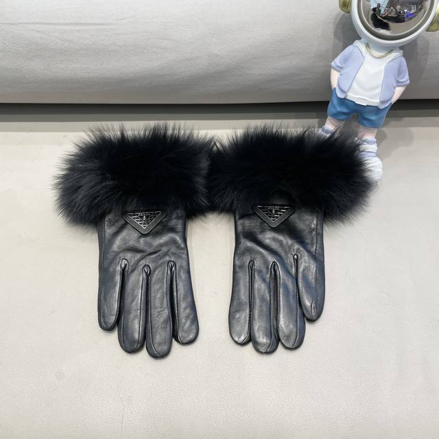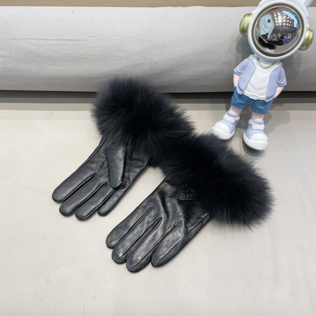 Prada Fall/Winter Fox Fur Pom-Paw Sheepskin Gloves for Touchscreen Phones. Worth comparing with similar styles of different quality, far superior to inferior products on the market. Imported first-grade sheepskin and fox fur lining, classic and timeless style. If you like it, you can buy it now. This quality means you can use it this year and next year. One size fits all.