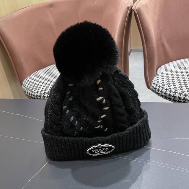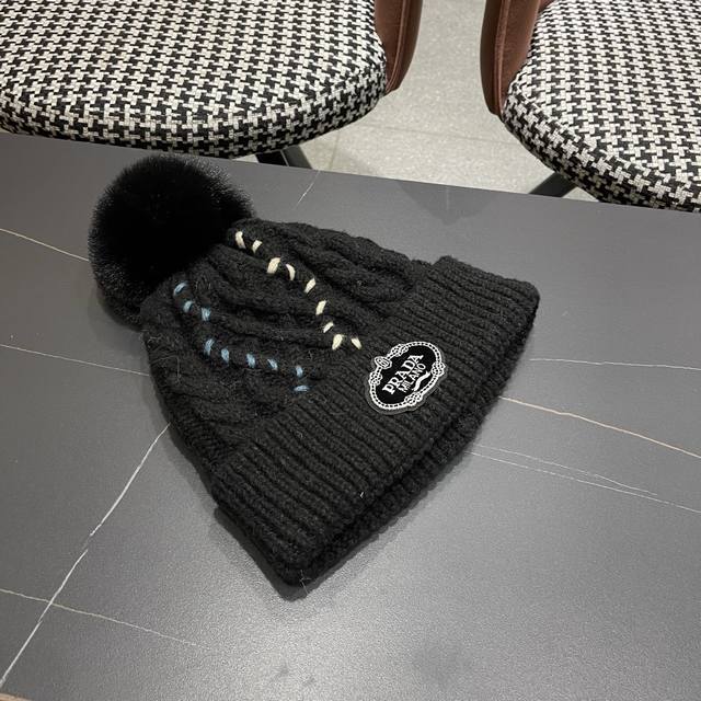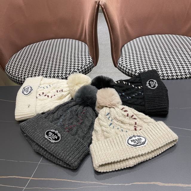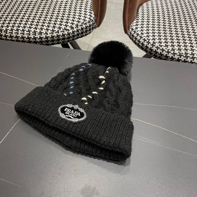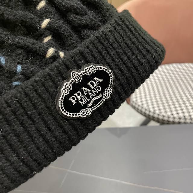 Prada new Korean style fashion all-match trendy women's autumn and winter face-revealing small knitted hat Western style simple temperament warm wool hat