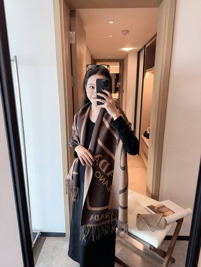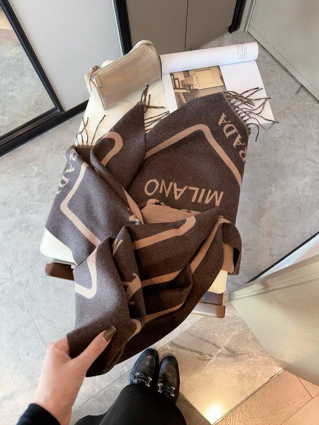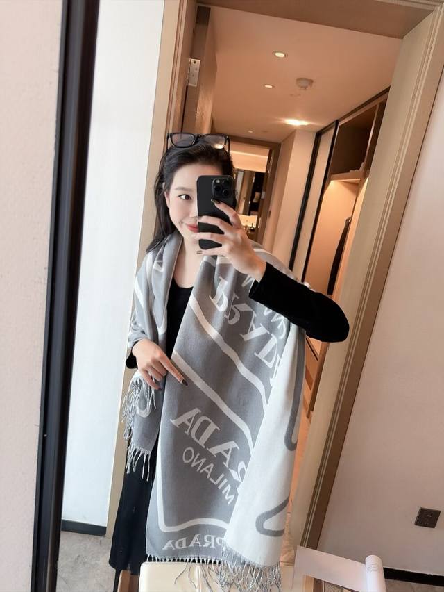 Prada official website latest wool scarf, original replica. Very soft and skin-friendly, with great elasticity, high-quality and very versatile style~ Very warm, a must-have for autumn and winter, unisex, highly recommended. Size 18065
