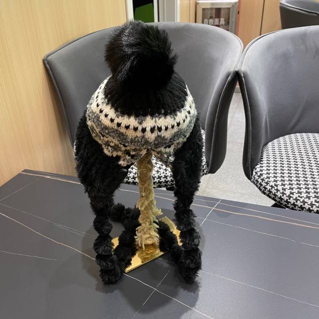 / Prada plush knitted braided ear flap Lei Feng hat for women, autumn and winter t