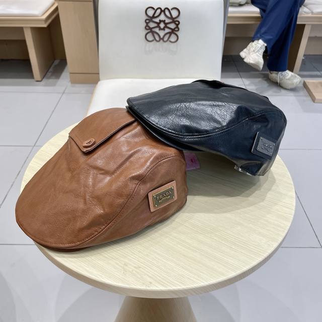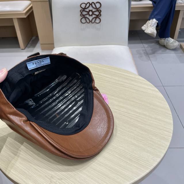 / prada Prada 2025 new autumn retro pu leather forward hat female Korean version p
