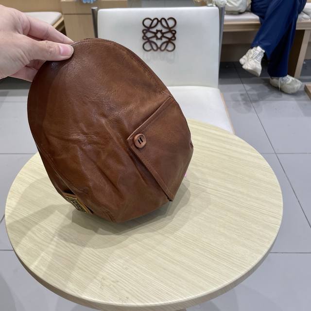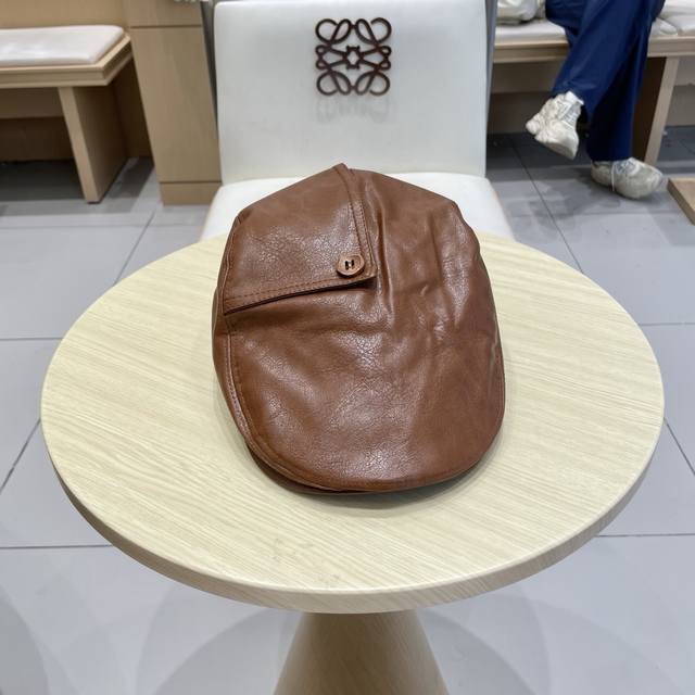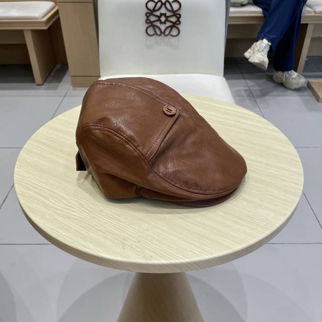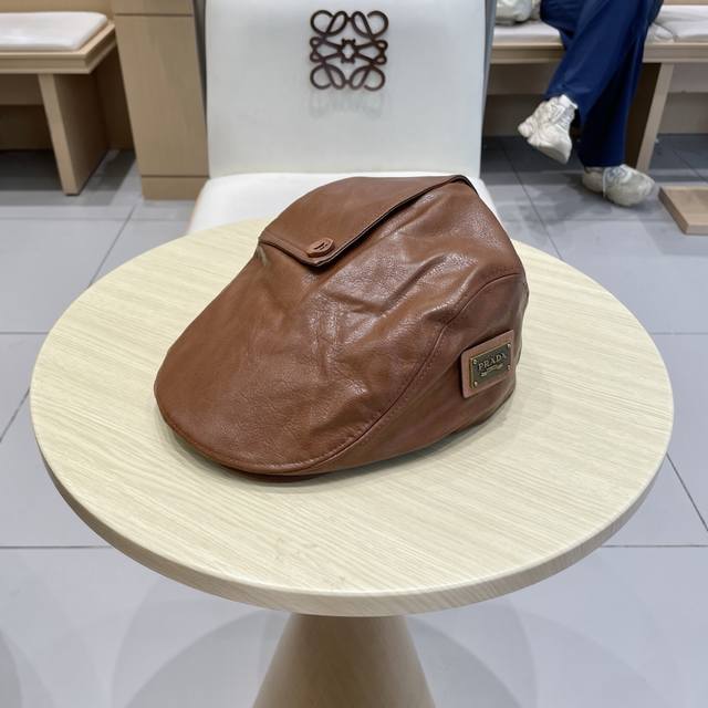 prada Prada 2025 new autumn retro pu leather forward hat female Korean version personality all-match painter hat street Maillard color 02