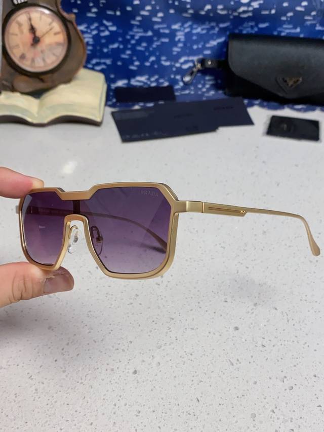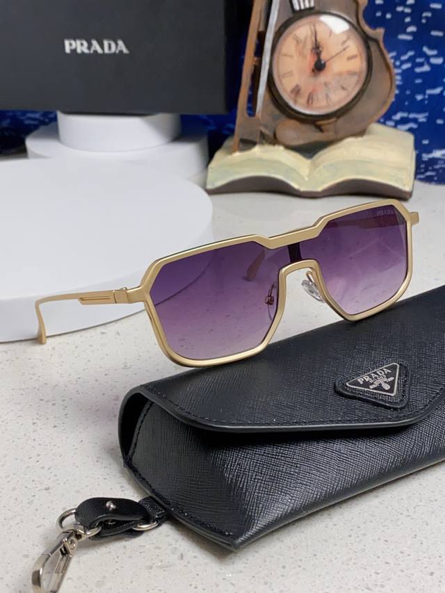 prada Prada 2025 new retro men's metal cyberpunk sunglasses cool personality one-piece sunglasses