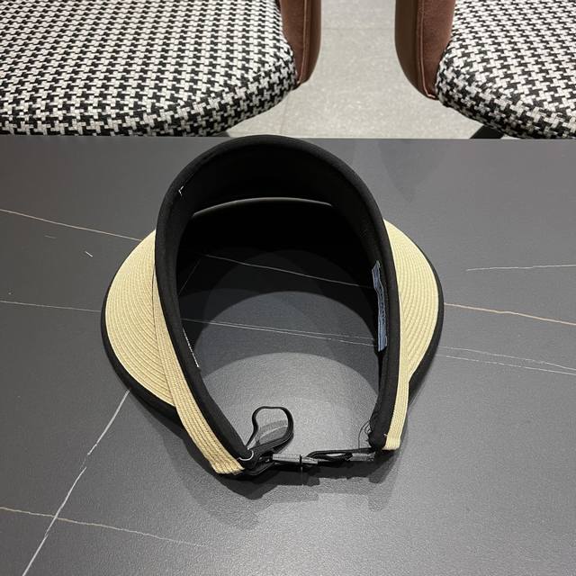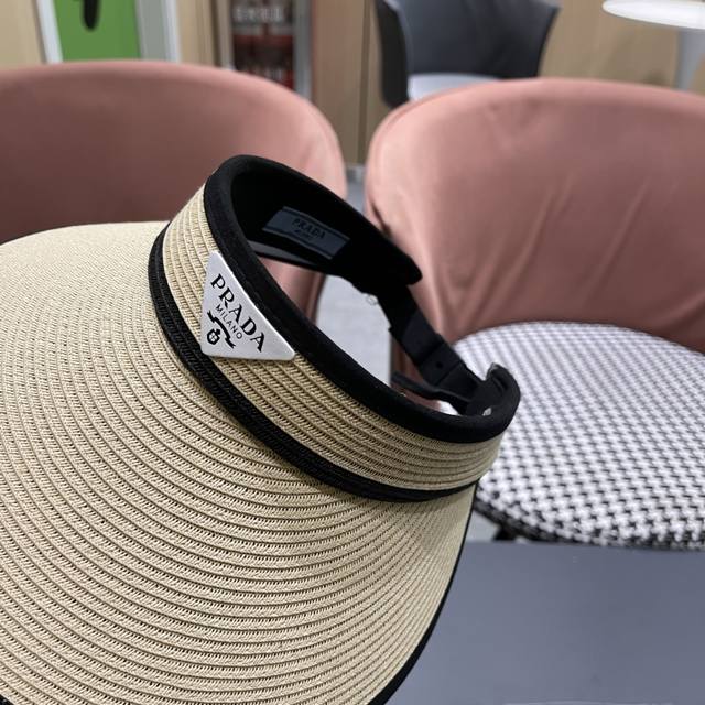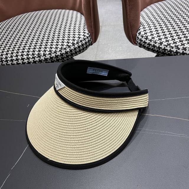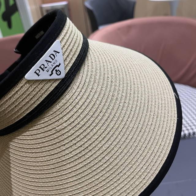 Prada new flat top hat, high-grade Pp straw fabric, head circumference 57cm DDD