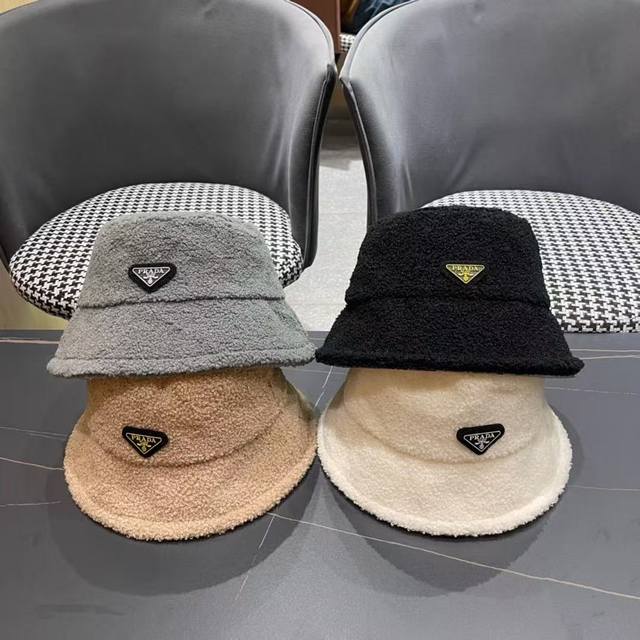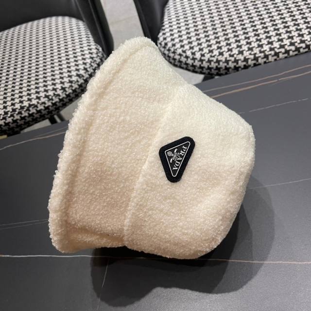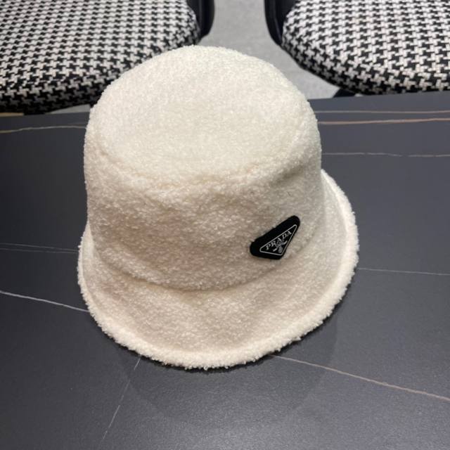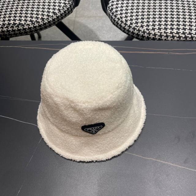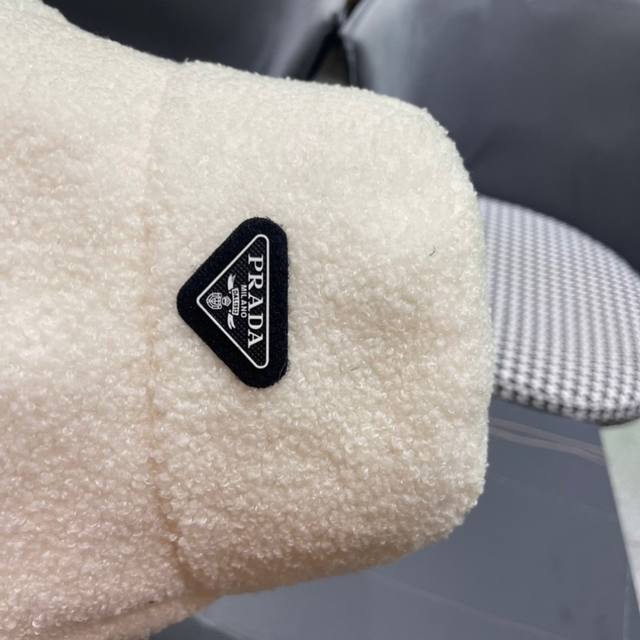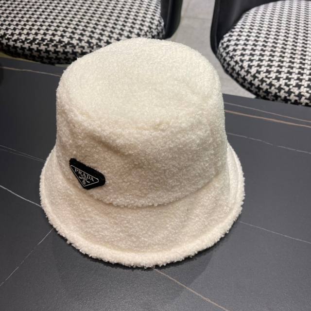 prada Prada bucket hat women's autumn and winter lamb wool warm versatile bucket hat Korean version of the leisure temperament bucket hat trendy Internet celebrity same style