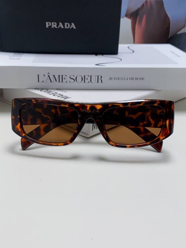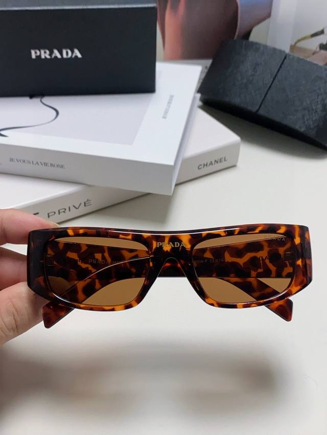 Prada Prada new retro rectangular integrated sunglasses sweet cool hot girl concave shape sunglasses for men and women industrial style anti-ultraviolet