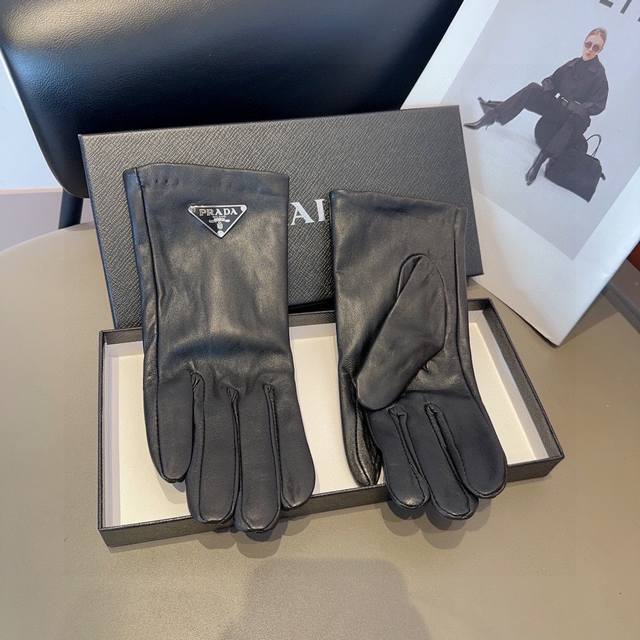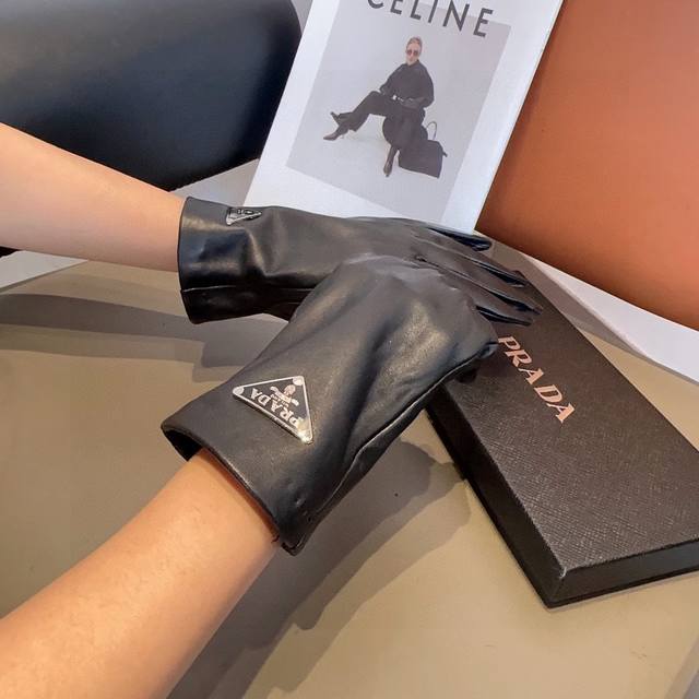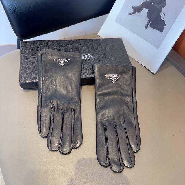 Prada women's sheepskin gloves, fashionable gloves, warm and velvet lining for autumn and winter, classic and simple, super comfortable and soft, versatile! Ml