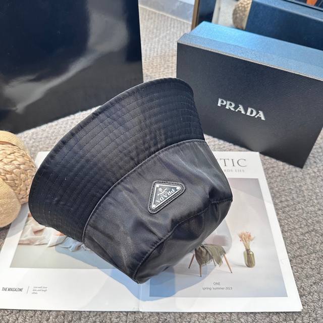 / Prada's classic triangle logo bucket hat, makes your face look smaller, a high-e
