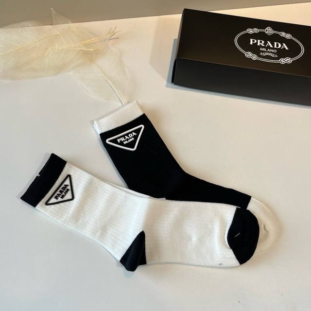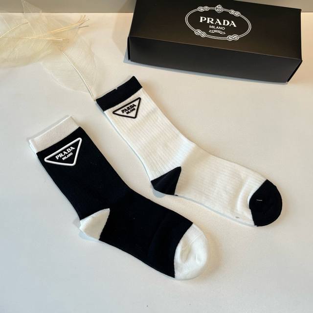 Prada's new early autumn long calf socks, classic style, fashionable and advanced! Big brand out, must-have for fashionistas, versatile colors