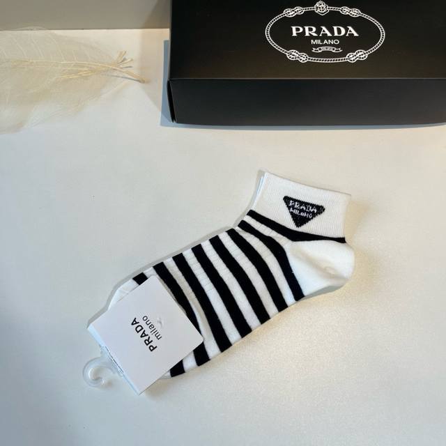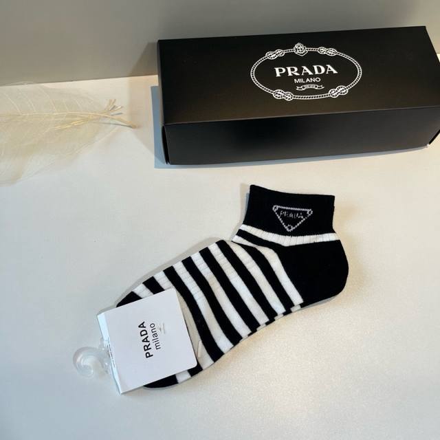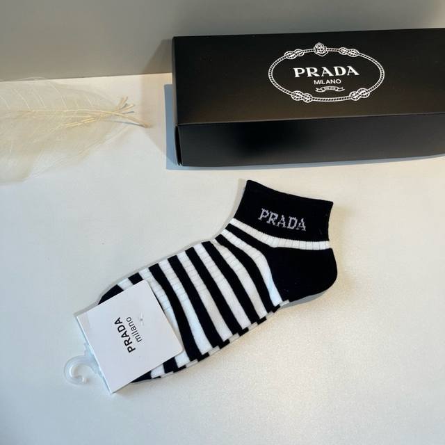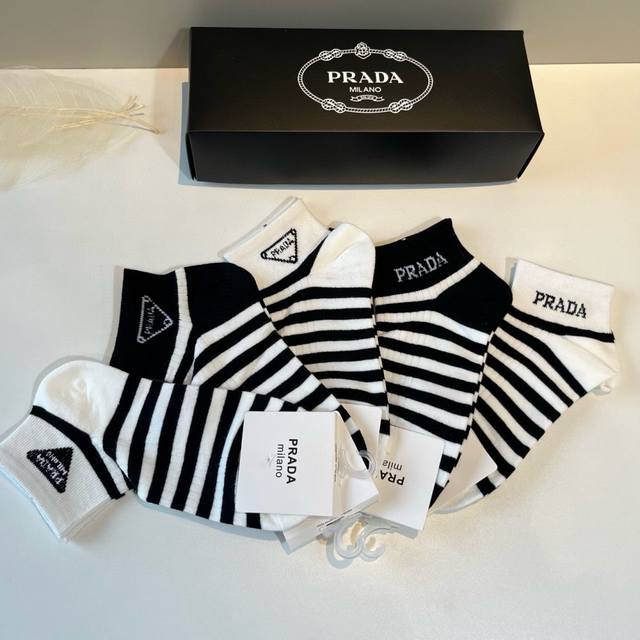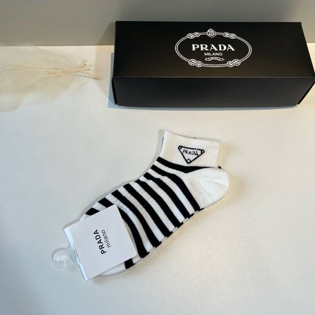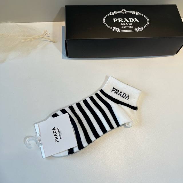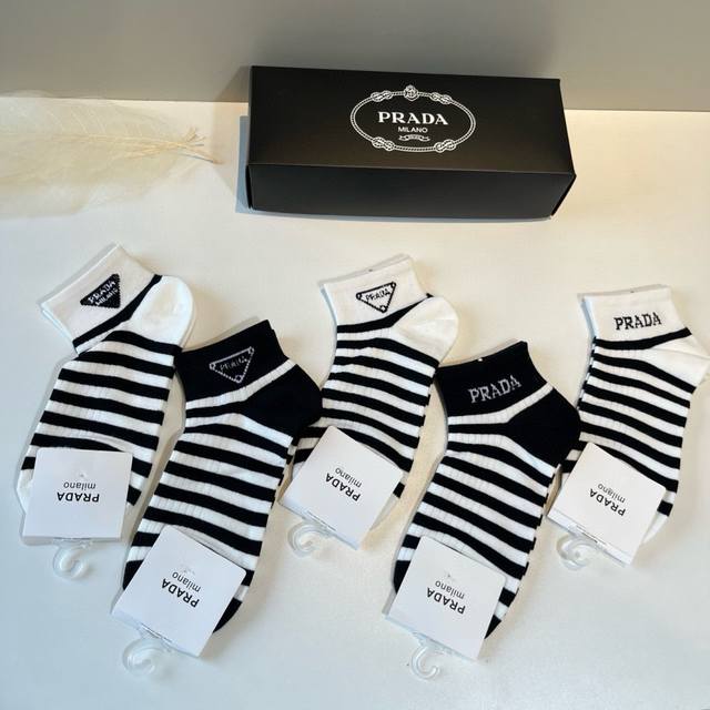Prada's new early autumn mid-length socks, classic style, fashionable and advanced! Big brand out, must-have for fashionistas, versatile colors, 5 pairs per box