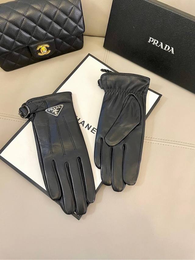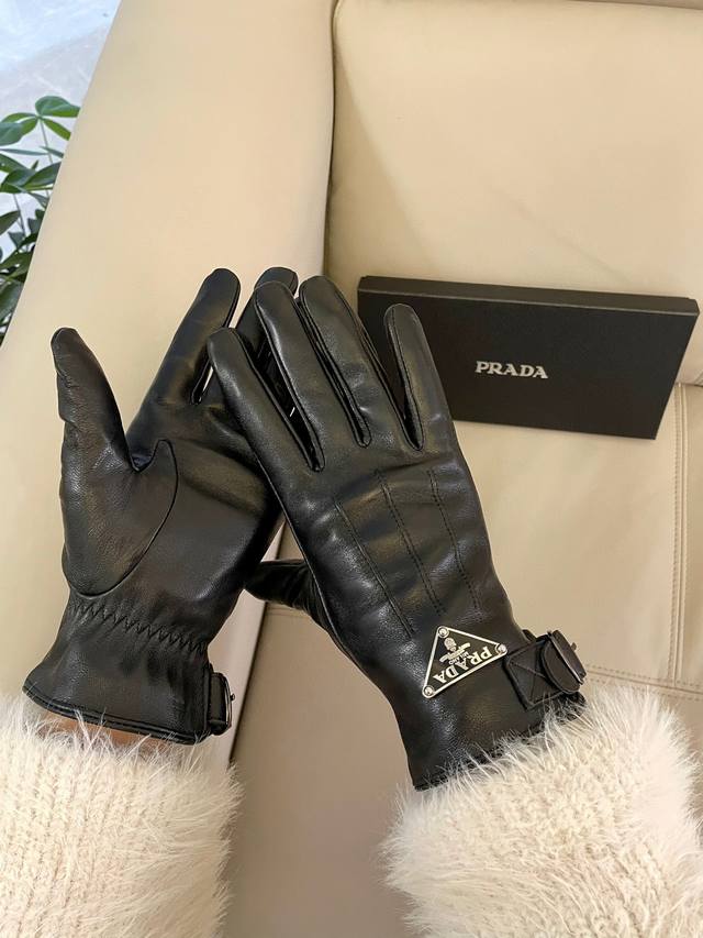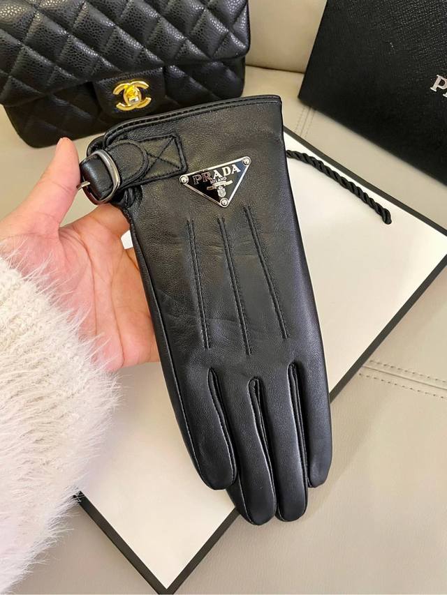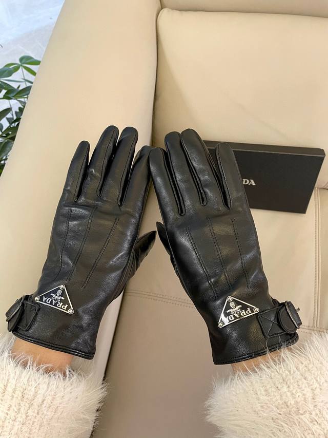 Prada's popular women's leather gloves are made of touch-screen sheepskin imported from Ethiopia. The simple and elegant static style adds a small logo buckle, which can be adjusted in size. The ultra-soft velvet lining is comfortable to wear.