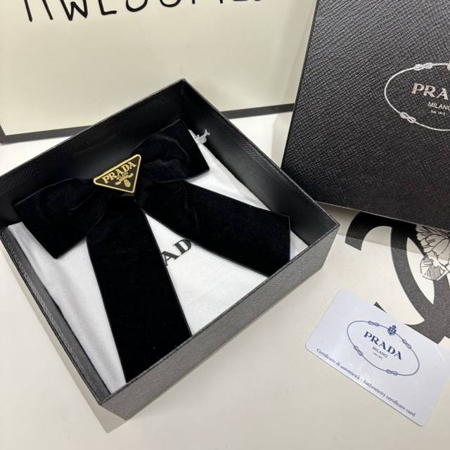 Prada Prada official website same latest bow hardware velvet hairpin#