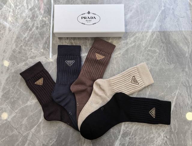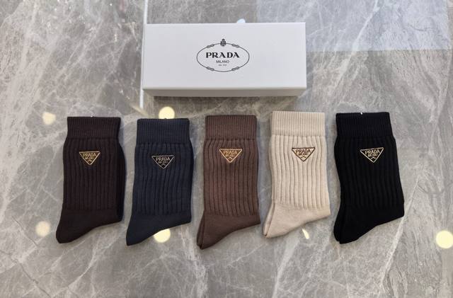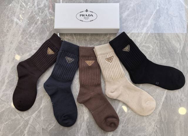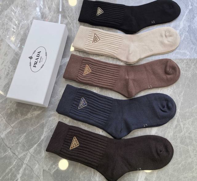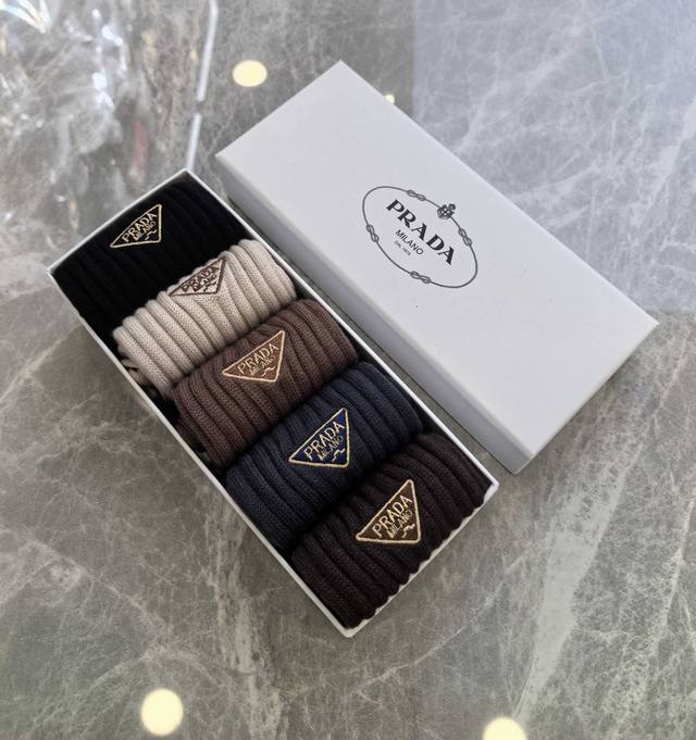 Specially packaged Prada new cashmere embroidered mid-length slouch socks! Five pairs per box, same style as in boutiques, a must-have for trendsetters, super easy to match.