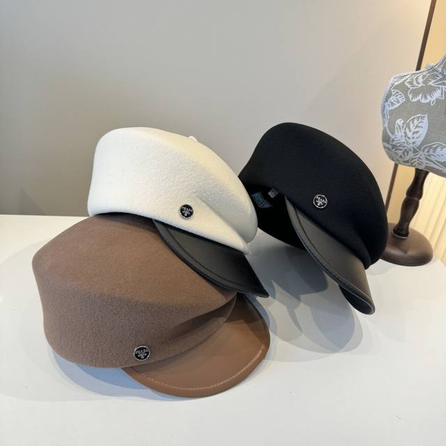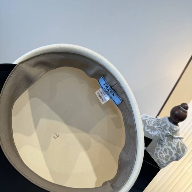 / White Prada new duckbill military cap, 100% wool, head circumference 57cm, adjus