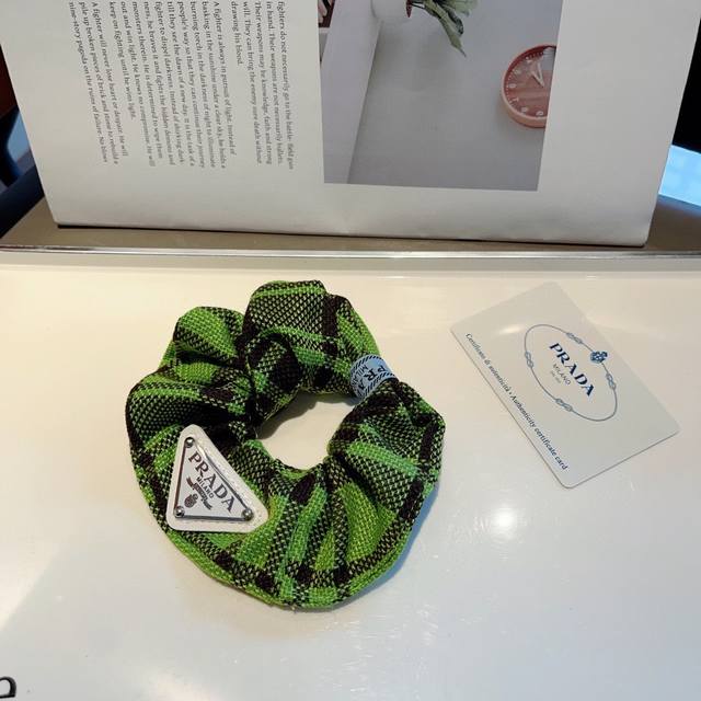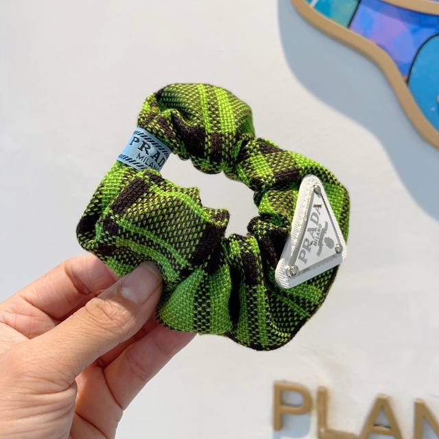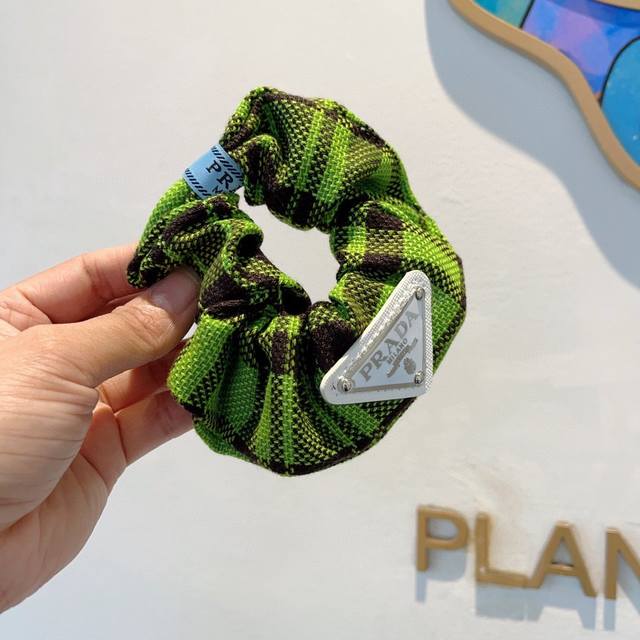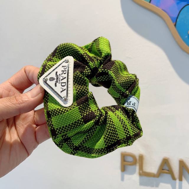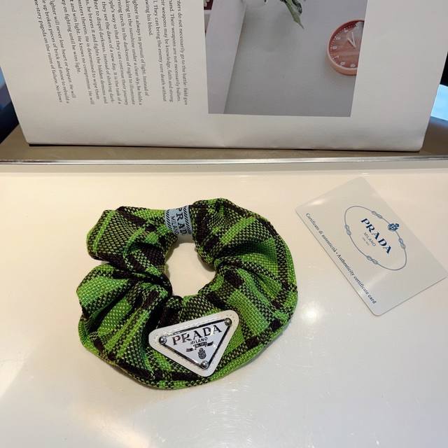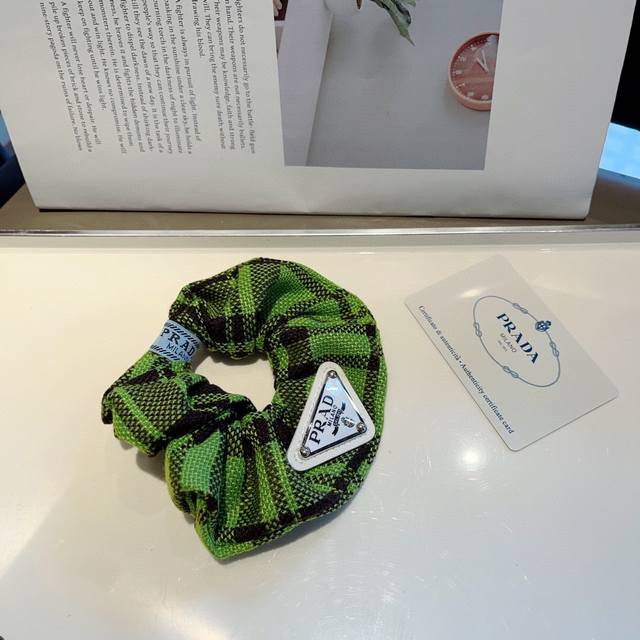 Prada Prada imported large intestine loop inverted triangle iron label rubber band, celebrity hair tie all-match style, all details are real shots of special fabrics that show great texture!