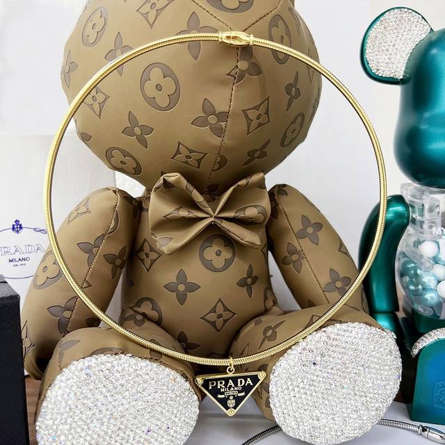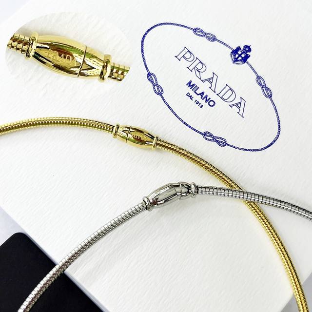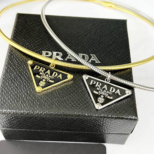 Gold Prada Triangle Choker - A hot new product. The choker features a pendant adorned with the historically significant Prada enamel logo, exuding a timeless charm. Featuring the simple yet iconic triangle emblem, it reinterprets punk elements in a modern way. (Gold)