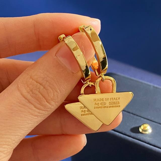 Prada European and American Fashionable Light Luxury Half-Circle Diamond-Studded Ring Letter Logo Drop Triangle Earrings, Brass Material, 18K Gold Plated, 4 Colors, Weight Approx. 12.3g, Total Height Approx. 4cm, Triangle Approx. 2.1cm * 2cm * 0.2cm DDD