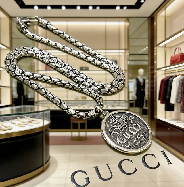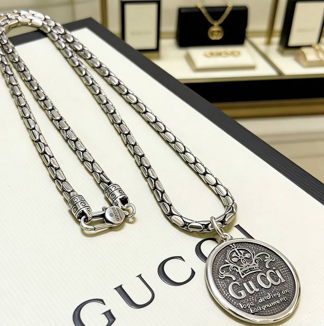 So cool! This Gucci necklace is the latest 2026 model. The chain is even more upscale, a classic style worn by celebrities. The quality and weight are very satisfying. It's from the Anger Forest series, featuring the double G Gucci necklace. The details are exactly as pictured, with an antique finish, unlike the glossy versions found on the market. This is a consistently best-selling Gucci piece that goes very well with trendy clothes.