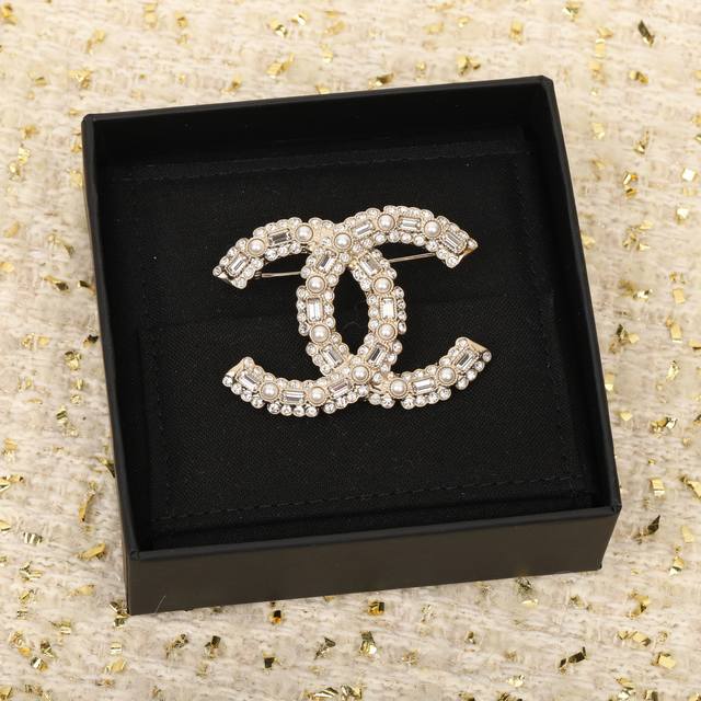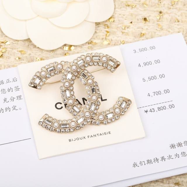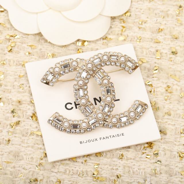Xiang double C rice bead letter brooch pearl + square diamond + round diamond design, must buy, the upper body is absolutely stunning design novel and unique, Cc and letter splicing, the upper body has a strong presence, pure and desirable! Consistent Zp brass material Swarovski crystal embellishment! The line sense of the letter is perfect and delicate [wit] super exquisite, you can't go wrong with anything! Be a beautiful fairy