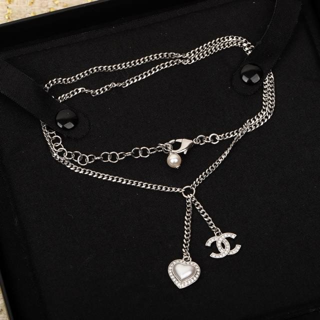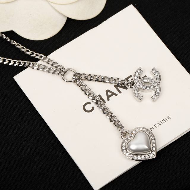 . Fragrance 23B silver heart double C necklace with adjustable length! It is really a girly and cute style that is worth a lot of money. It makes me fall in love with it at first sight. Swarovski crystal + special heart pearl, Y-shaped design, simple and generous, very everyday, the upper body looks young and girly, and it is really beautiful when paired with a small skirt. Ladies who like the little heart girl style, go go go