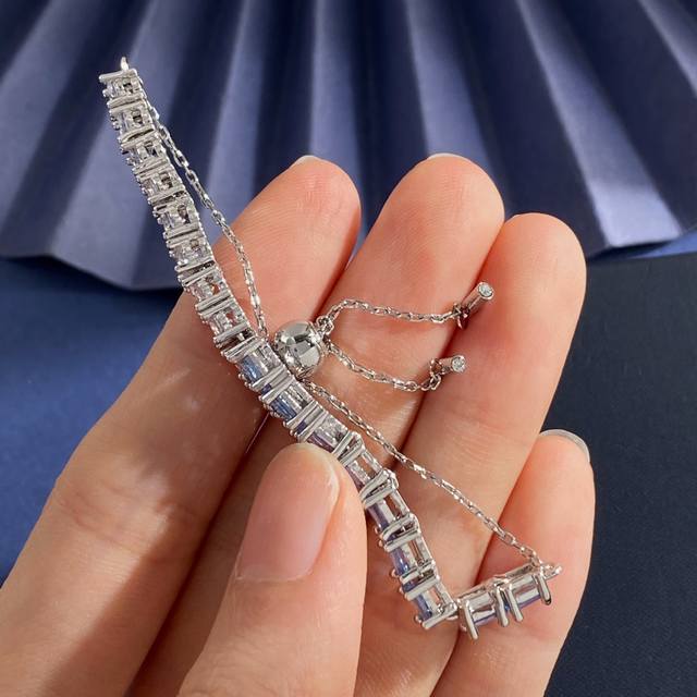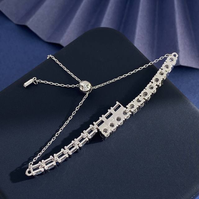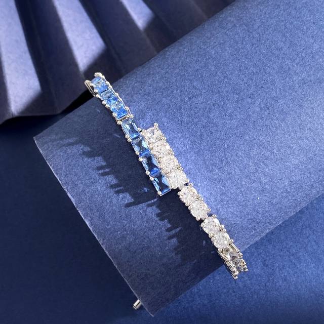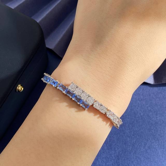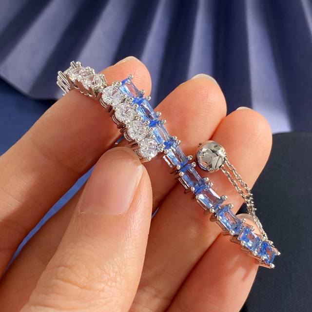 Swarovski Fashion Design Mixed Cut Blue Zircon Diamond Bracelet, Adjustable Length, Brass Material, Silver Bracelet, Weight Approx. 8.4G