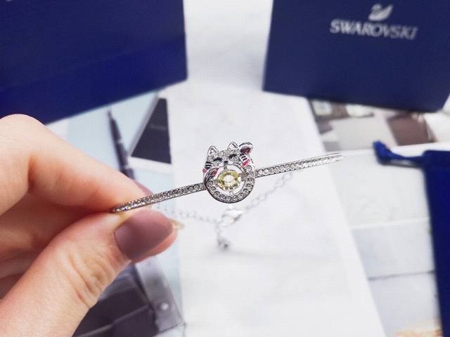 Lucky Cat Flexible Bracelet This Swarovski Bracelet Features A Lucky Cat Design, Bringing Joy, Good Luck, And Success To The Wearer. The Elegant And Intricate Lucky Cat Decoration Features Vibrant Details, Complemented By A Yellow Swarovski Crystal Symbolizing Coins, Suspended In A Floating Design.