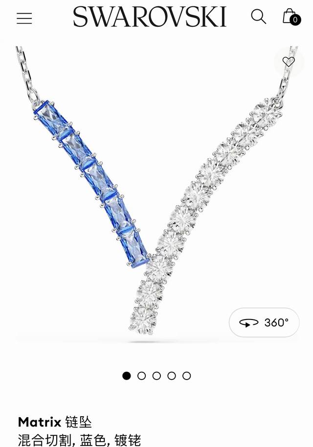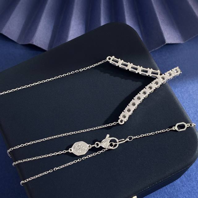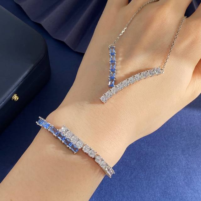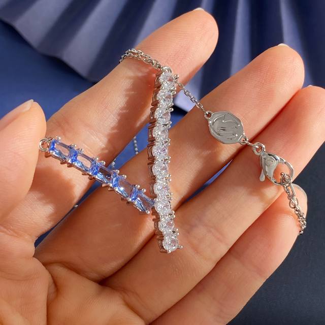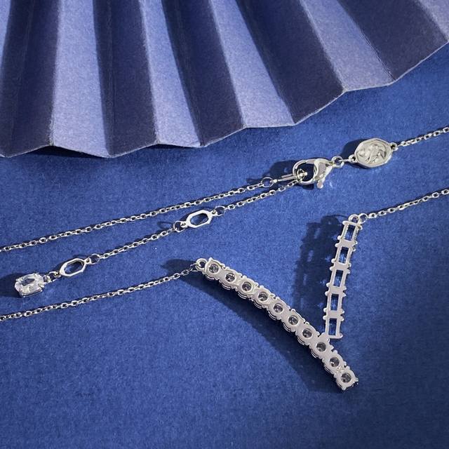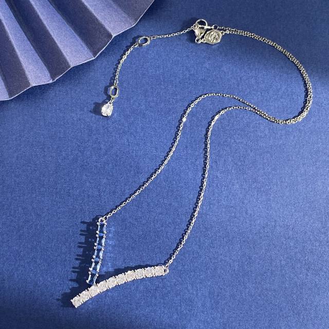 Swarovski Fashion Design Mixed-Cut Blue Zircon Diamond Y-Shaped Pendant Necklace, Brass Material, Silver Necklace, Weight approx. 6.8g; Necklace Length approx. 46cm + 3cm + 3cm + 0.7cm Tag